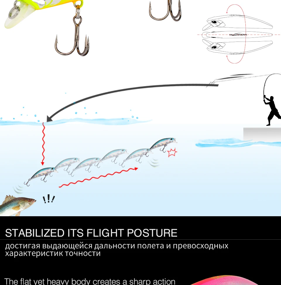 TSURINOYA 60S hundimiento Minnow Señuelos de Pesca 60mm 6,1g Jerkbait Lucio Carkbait Wobblers cebo profesional duro