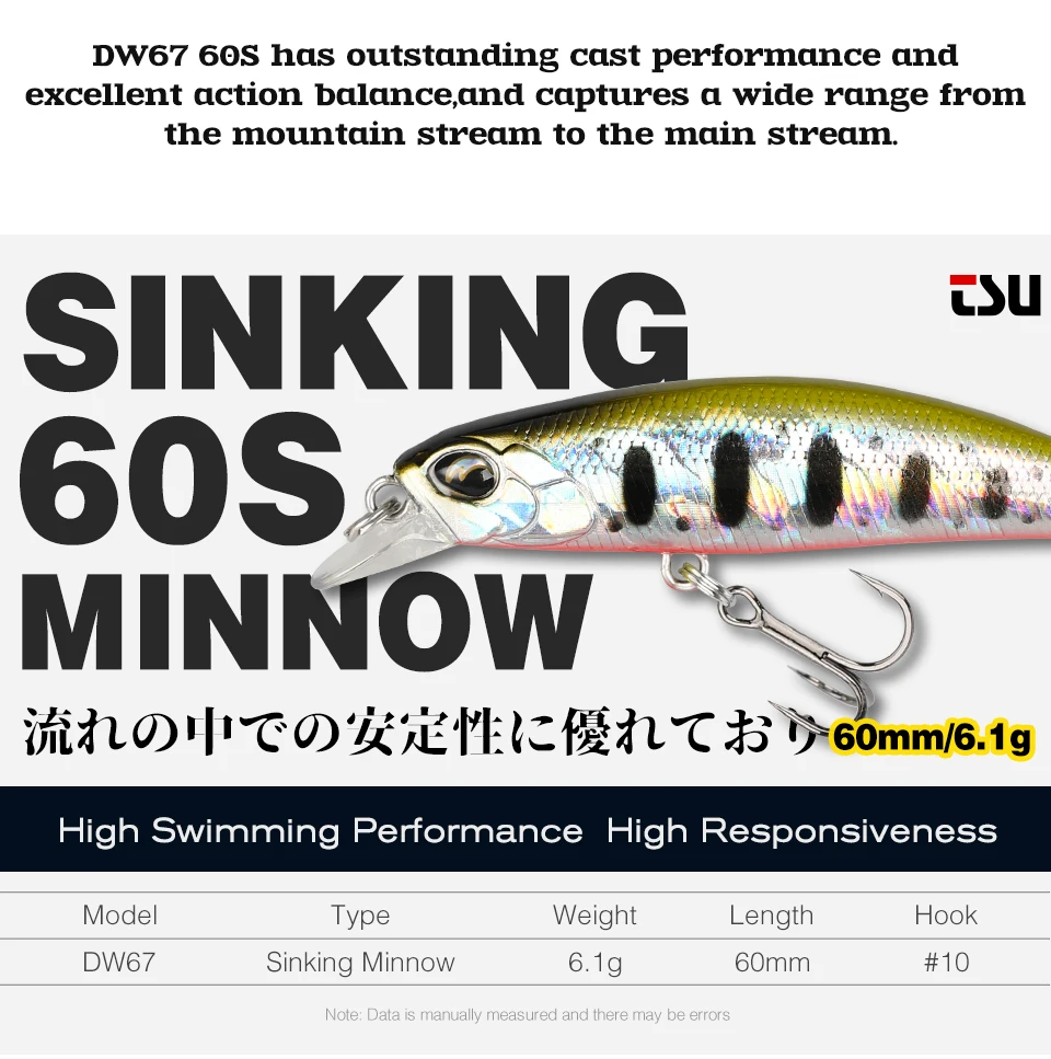TSURINOYA-SEÑUELOS DE PESCA DE piscardo 60S, 60mm, 6,1g, Jerkbait, Lucio, Carkbait, Wobblers, Swimbait, cebo duro profesional