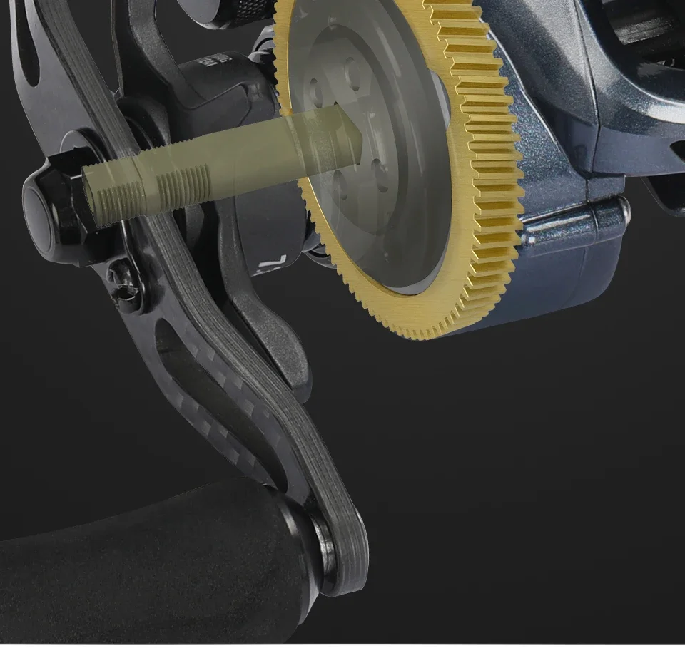 El carrete utiliza un engranaje principal de latón finamente mecanizado que garantiza una vida útil más larga, mayores velocidades y mayor resistencia.