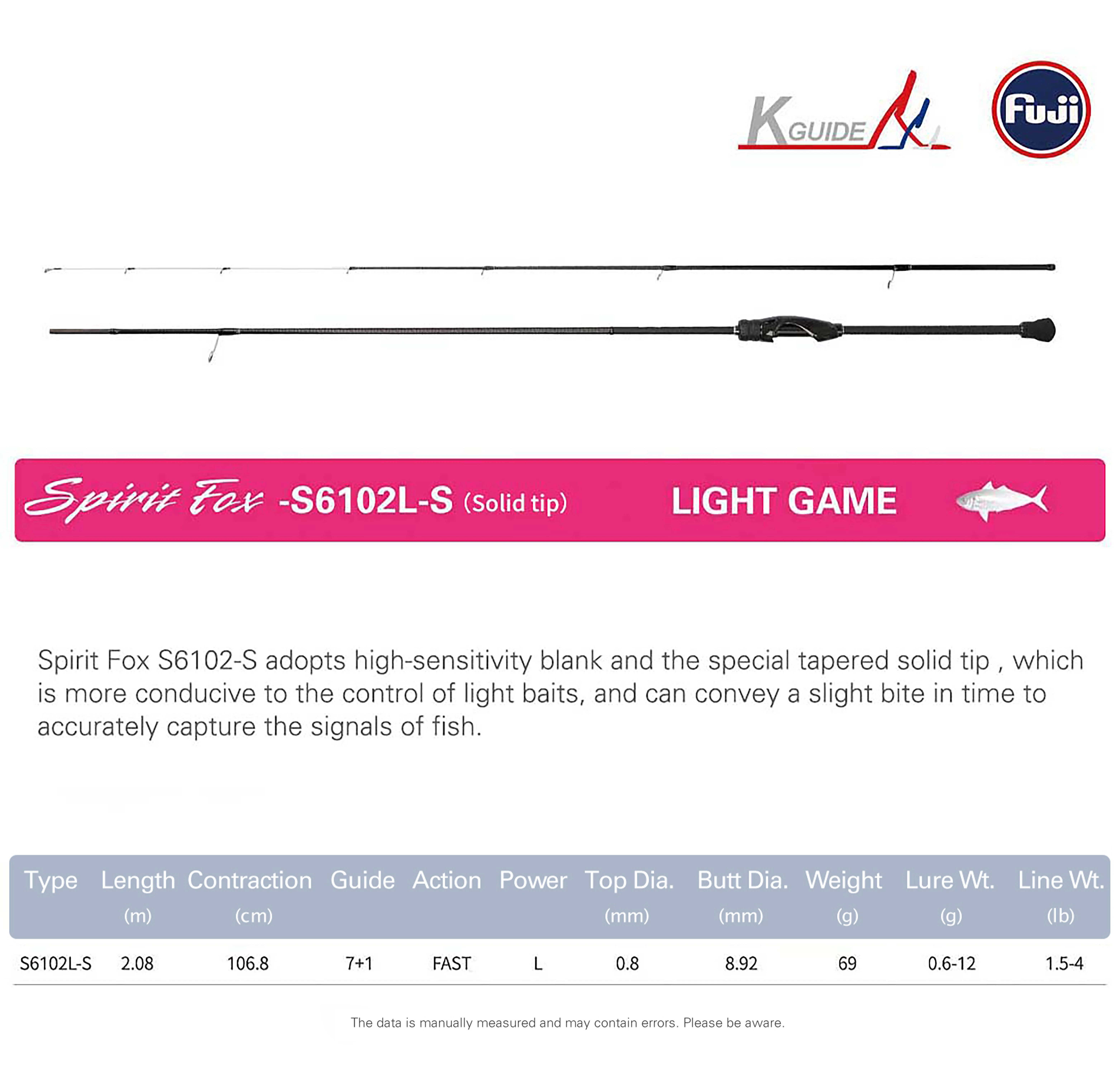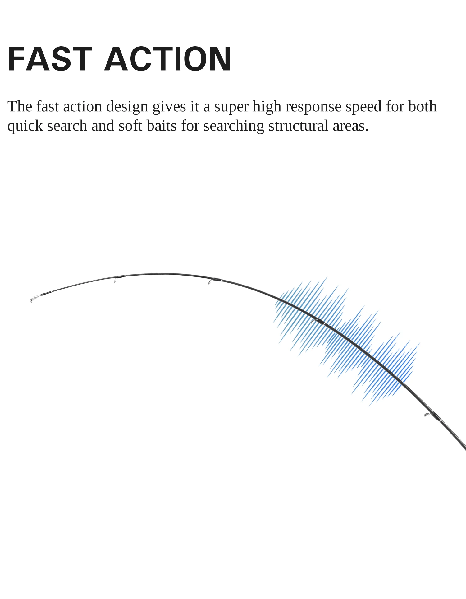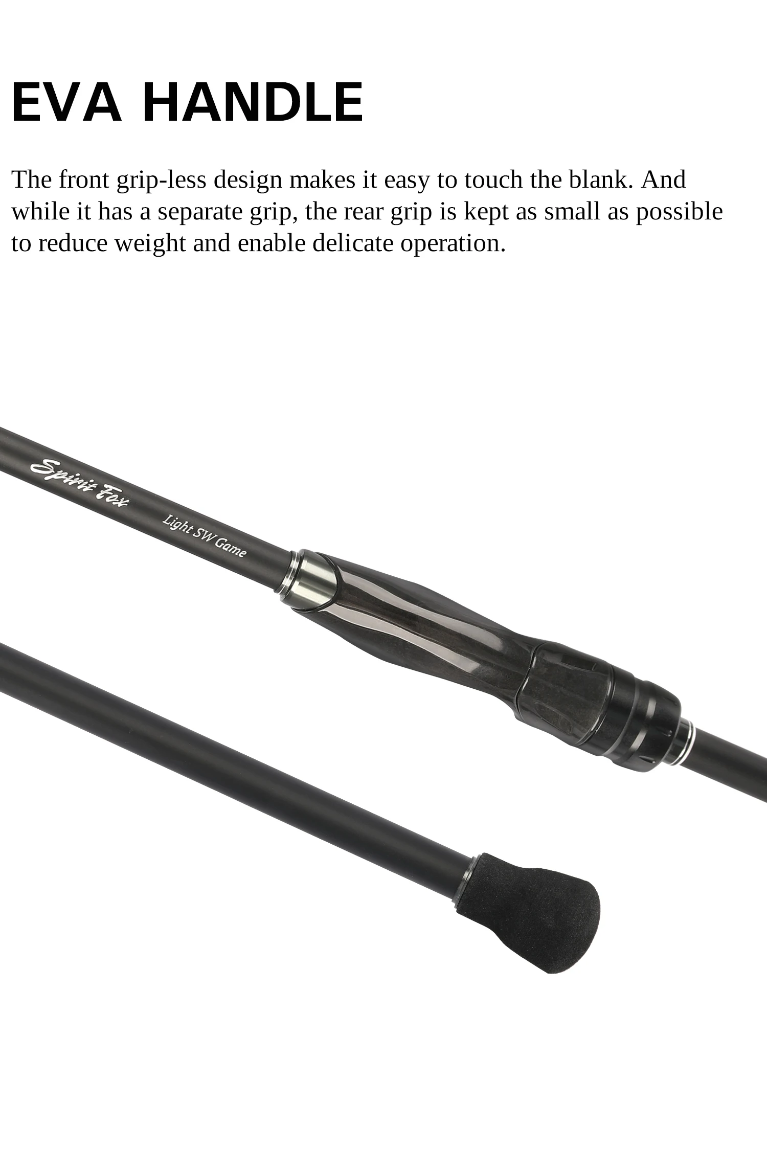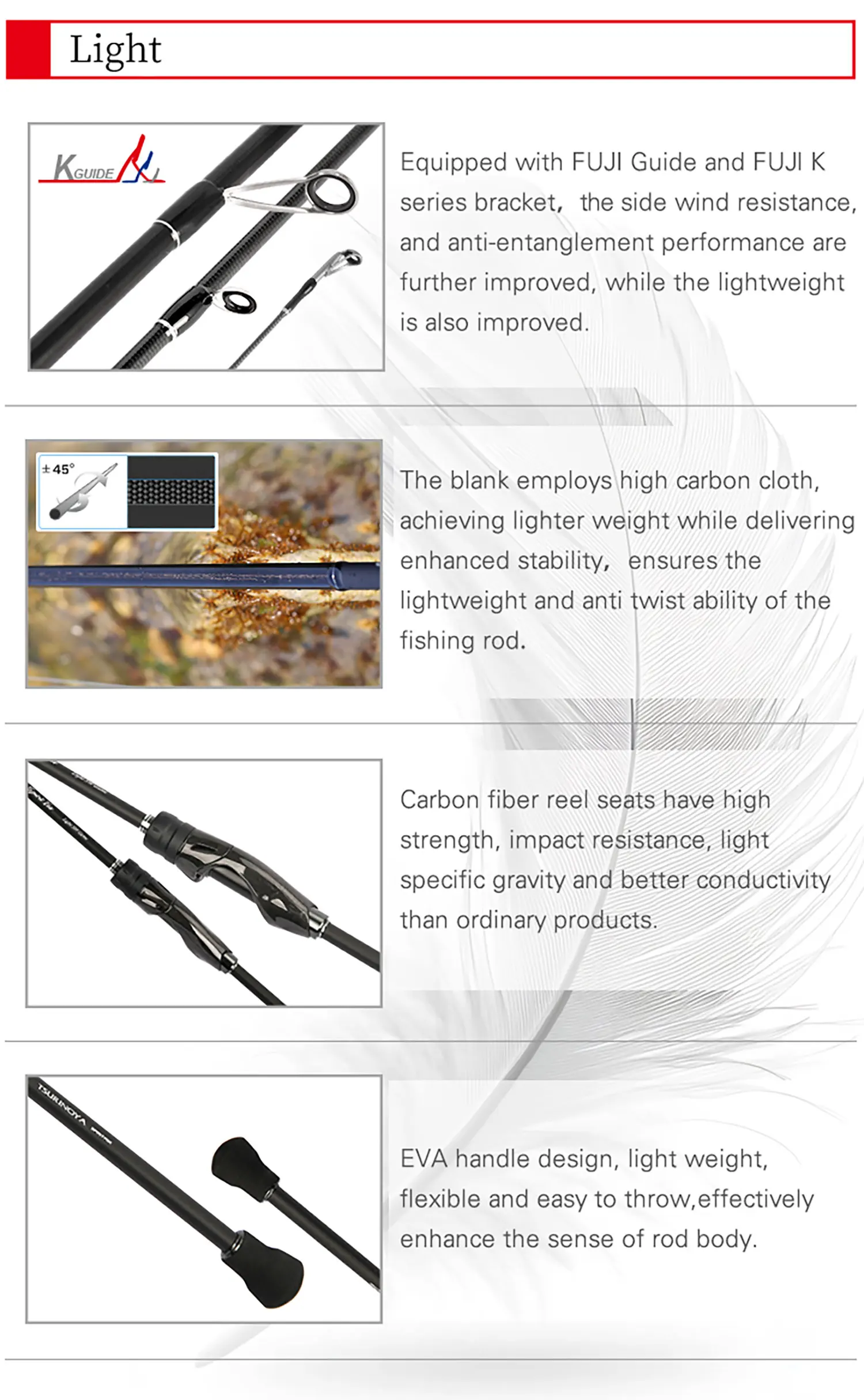 La caña de pescar es sencilla y ligera. La punta del blank es delgada pero suave y no es rápida: acción media. Soporta bien el peso especificado por el fabricante. La caña es adecuada para señuelos metálicos, pero no la recomiendo para la pesca ligera con señuelos de plástico blando. Para equilibrar la caña se necesita un carrete de unos 200 g.