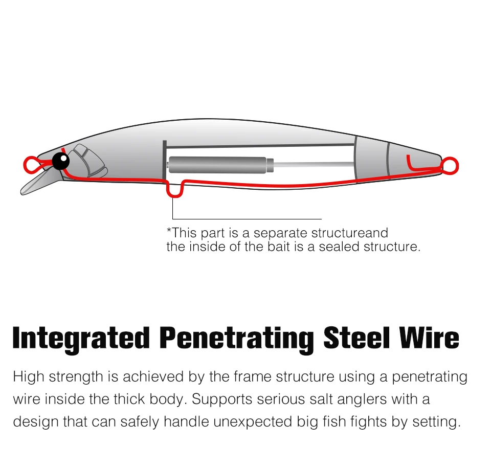 Un potente y fuerte Stinger 125F que nada con alambre penetrante y cuerpo grueso puede manejar peces grandes de forma segura.Dado que está equipado con un sistema de movimiento del centro de gravedad de la serie Stinger, el rendimiento de vuelo que está dentro del alcance incluso en puntos difíciles de alcanzar, como mareas lejanas en la orilla rocosa, es vivo y bueno.