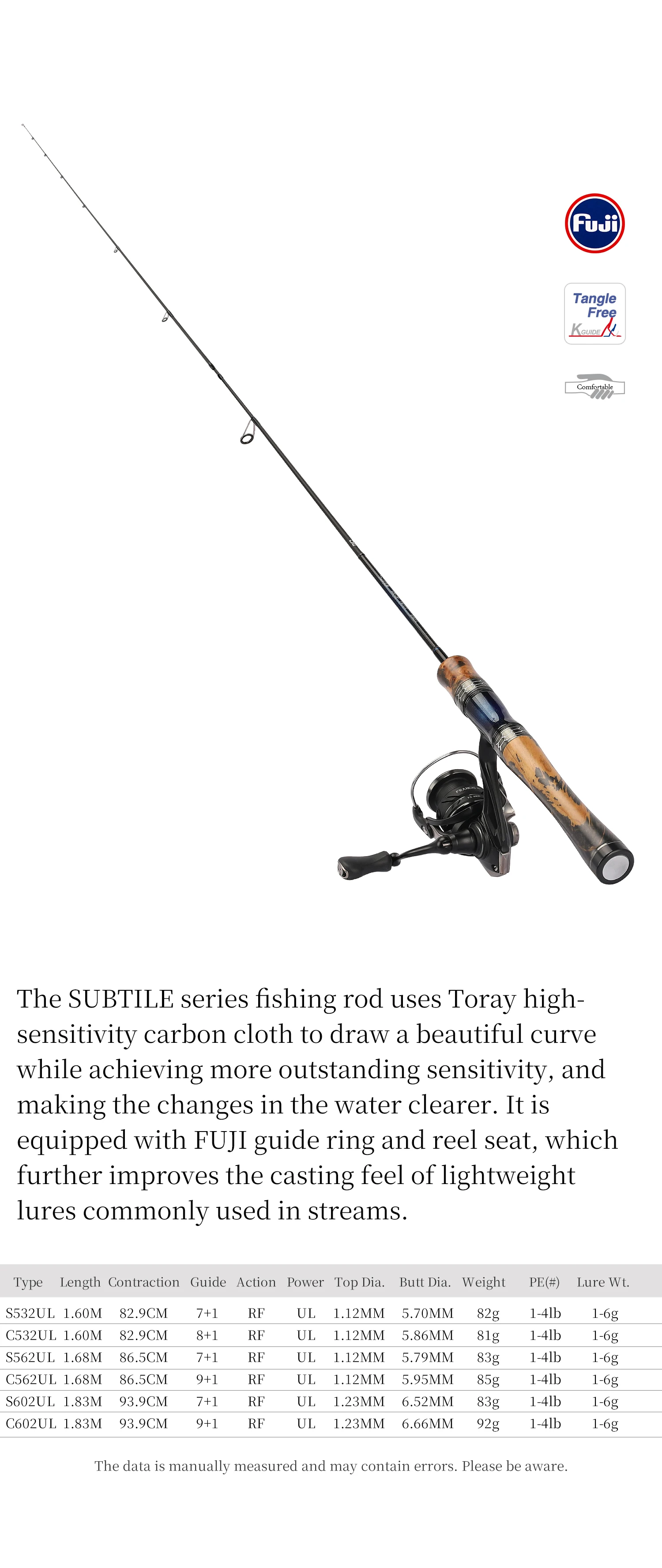 TSURINOYA SUBTILE juego de trucha caña de fundición giratoria guía FUJI 1,60 m 1,68 m 1,83 m UL Power RF caña de pescar de corriente sensible a la acción