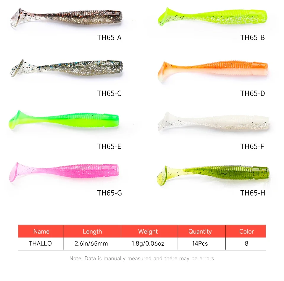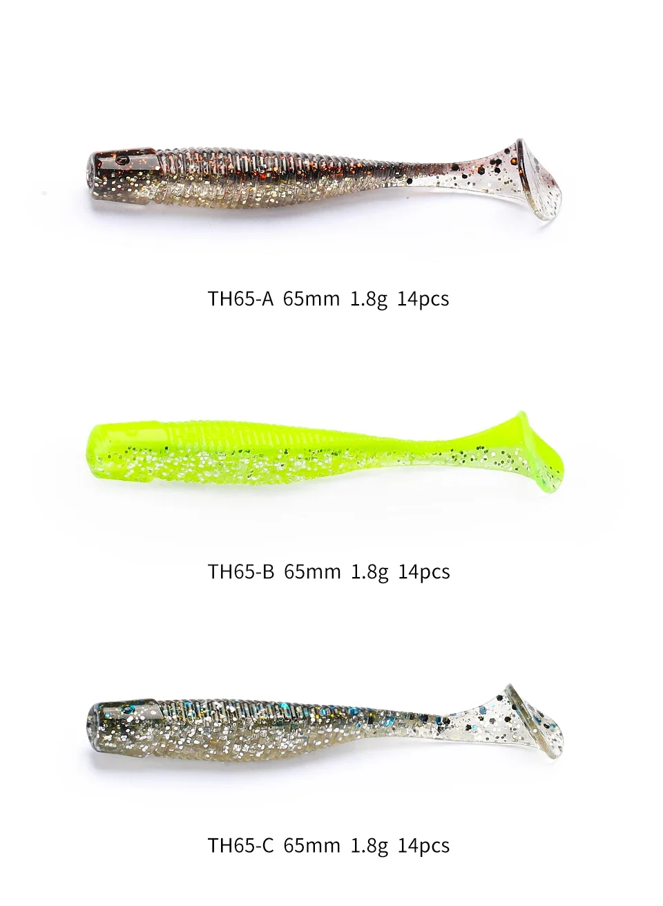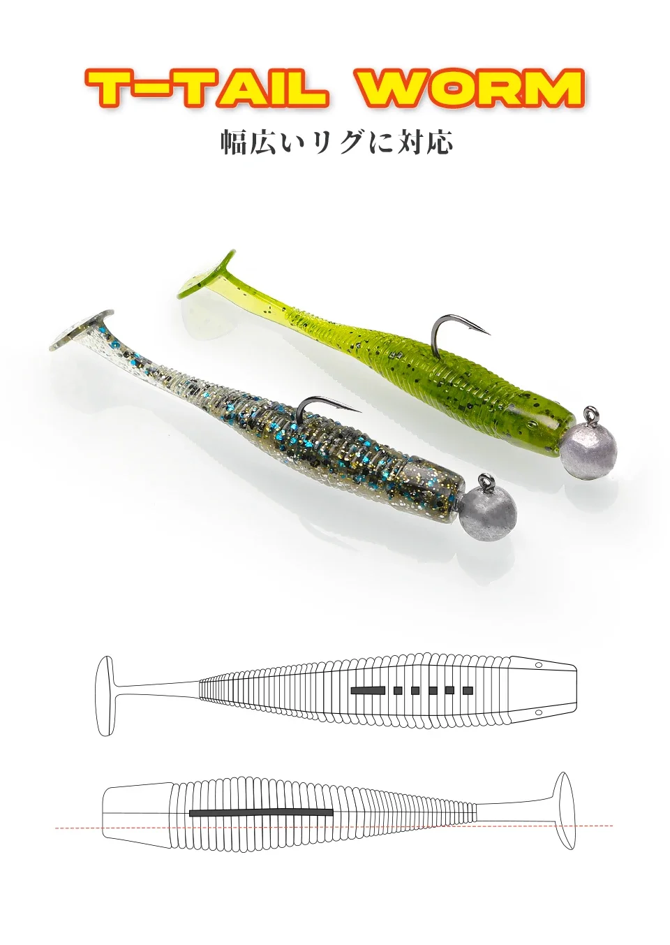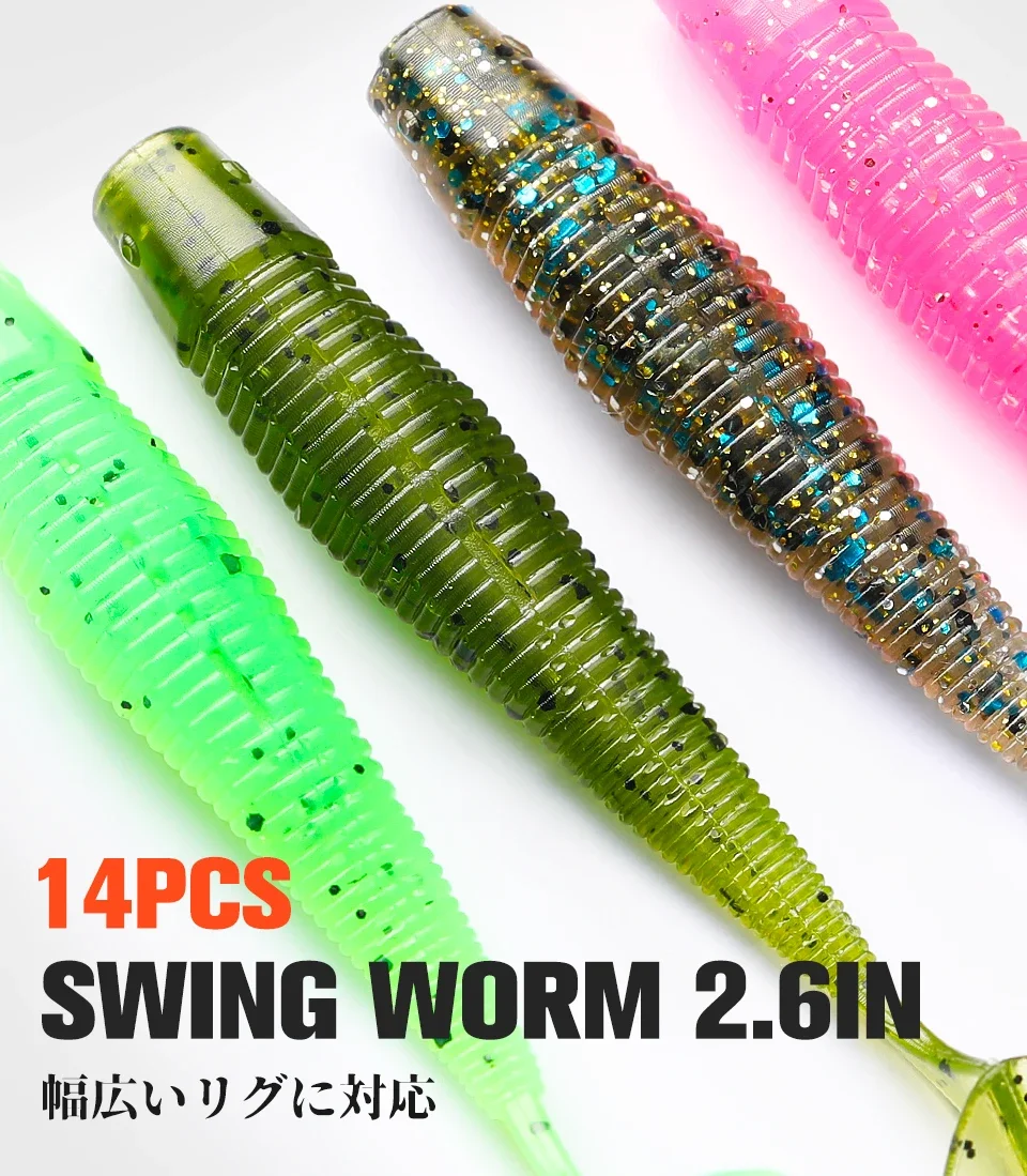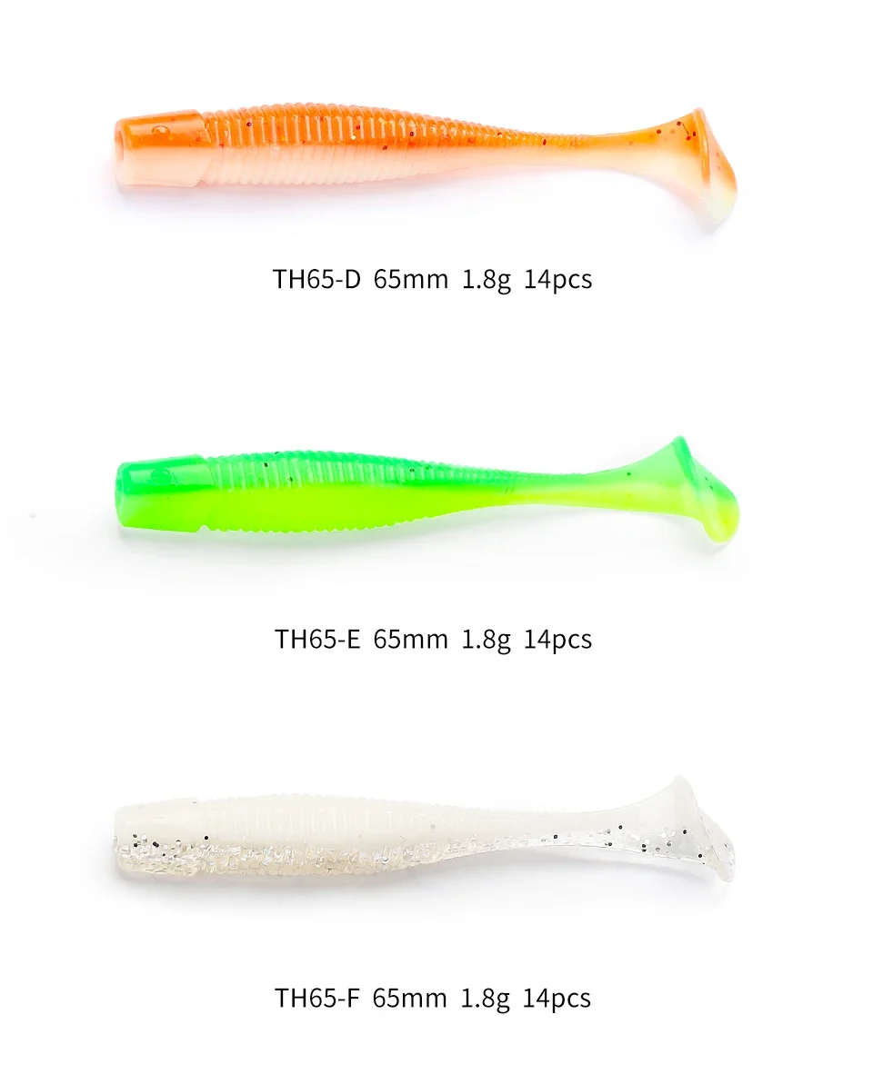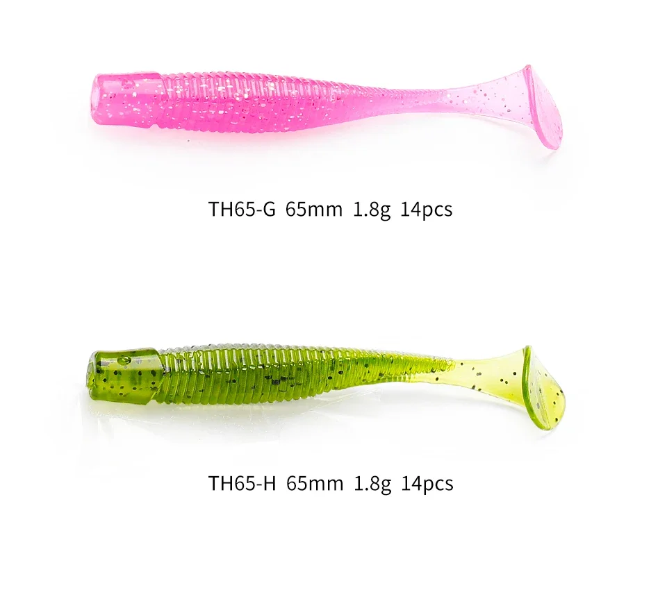 TSURINOYA T cola columpio gusano cebo suave THALLO 65mm 1,8g 14 Uds agregar sabor a camarón cebos de pescado falso lubina aparejos de pesca Wormbait