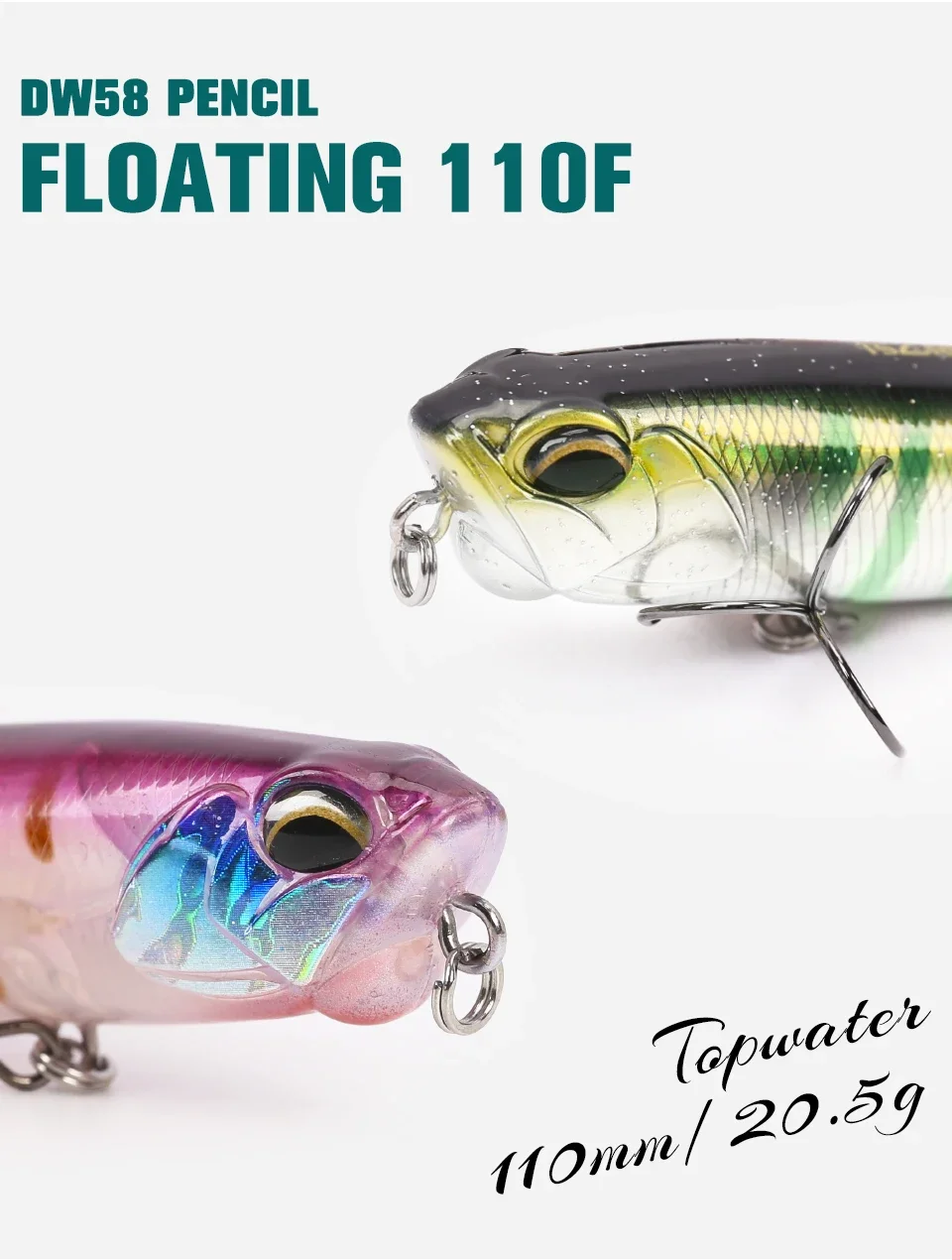TSURINOYA-lápiz flotante de agua superior Wobblers, 110mm, 20,5g, señuelo para lubina, Swimbait, cabeza de serpiente, cebo duro Artificial profesional