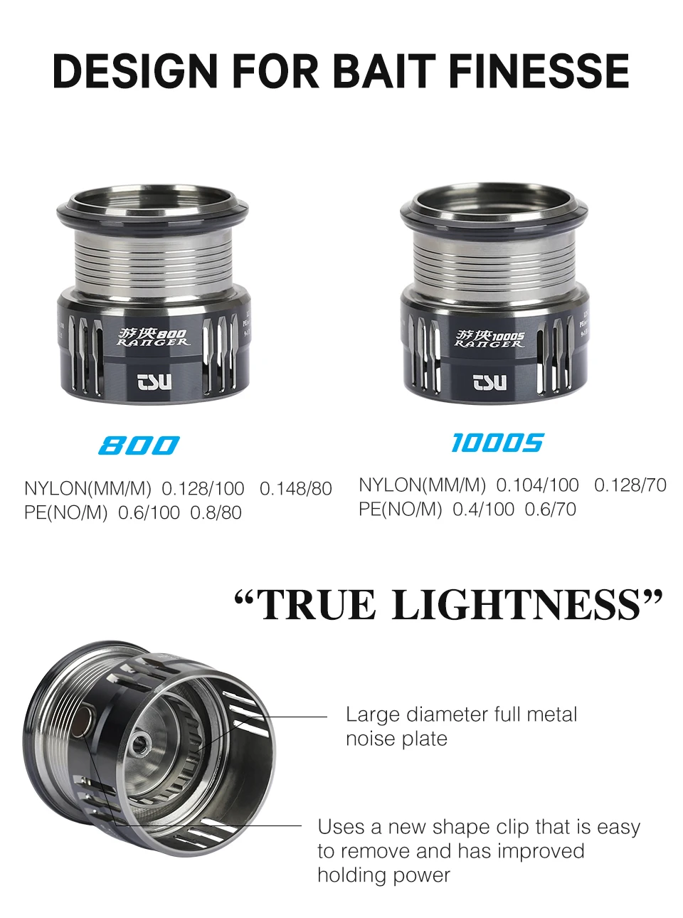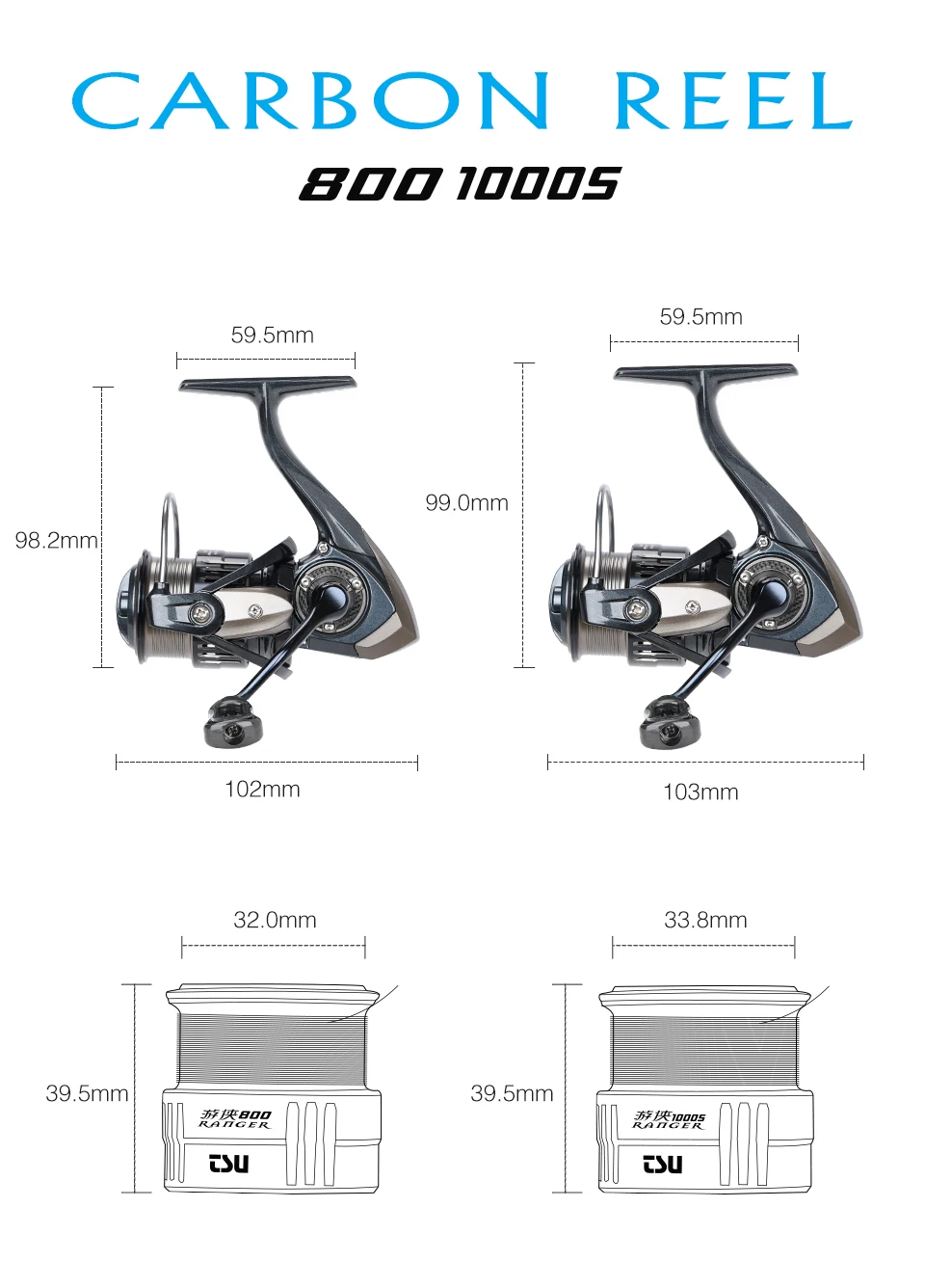 TSURINOYA, carrete de pesca giratorio de carbono, ultraligero, 155g, cebo fino, 1000S RANGER 800, carrete pequeño y poco profundo, rueda de pesca de trucha