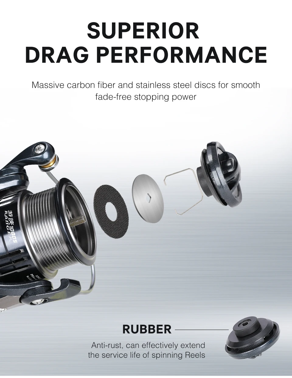 7. Rodamientos de acero inoxidable 9 + 1, que prolongan eficazmente la vida útil de los carretes giratorios