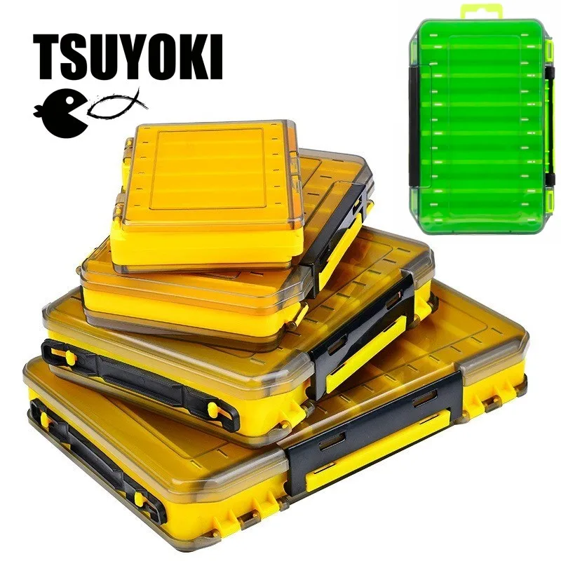 Caja de señuelos TSUYOKI, cajas de aparejos de pesca de almacenamiento grande, caja de aparejos de pesca de plástico PP impermeable de doble cara, equipo de pesca