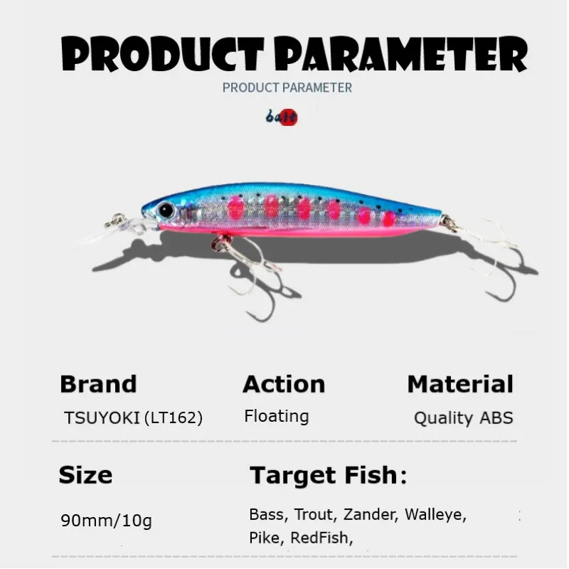 muy buen señuelo de pesca tanto de agua dulce como en el mar tienemuy buenos colores y además el factor un para iluminar las aguas oscuras o para la pesca nocturna, tiene buenos anzuelos y muy buenos movimientos en el agua por lo que yo aconsejo la compra de este magnífico señuelo