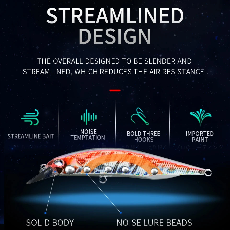 1,2x ganchos triples fuertes: está armado con ganchos de soporte, mayor potencia, duradero, agua de mar dulce universal. 2.Piel de pez de simulación (laser): el diseño de la piel de pez de simulación la hace más atractiva para los peces grandes. 3.Anillos bicíclicos más fuertes: fortalecen el doble círculo y aumentan la resistencia al tirón. Ojos de pez 4.3D: ojos de simulación 3D, grandes y brillantes, más tentadores y reflectantes.