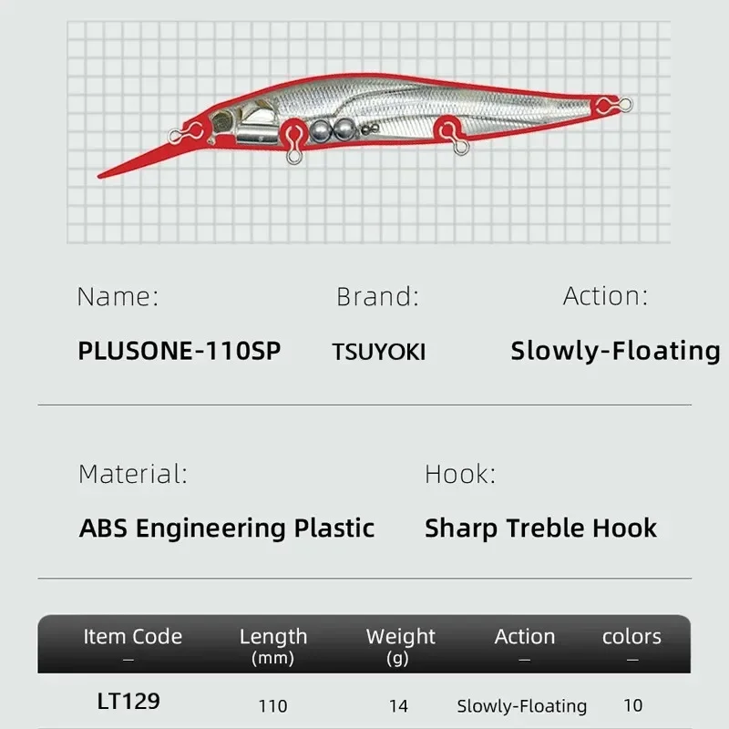 TSUYOKI Minnow Wink 110SF Wobblers 110mm 14,5g Jerkbaits flotante lento Wobblers de buceo poco profundo Megabass Vision Oneten 110