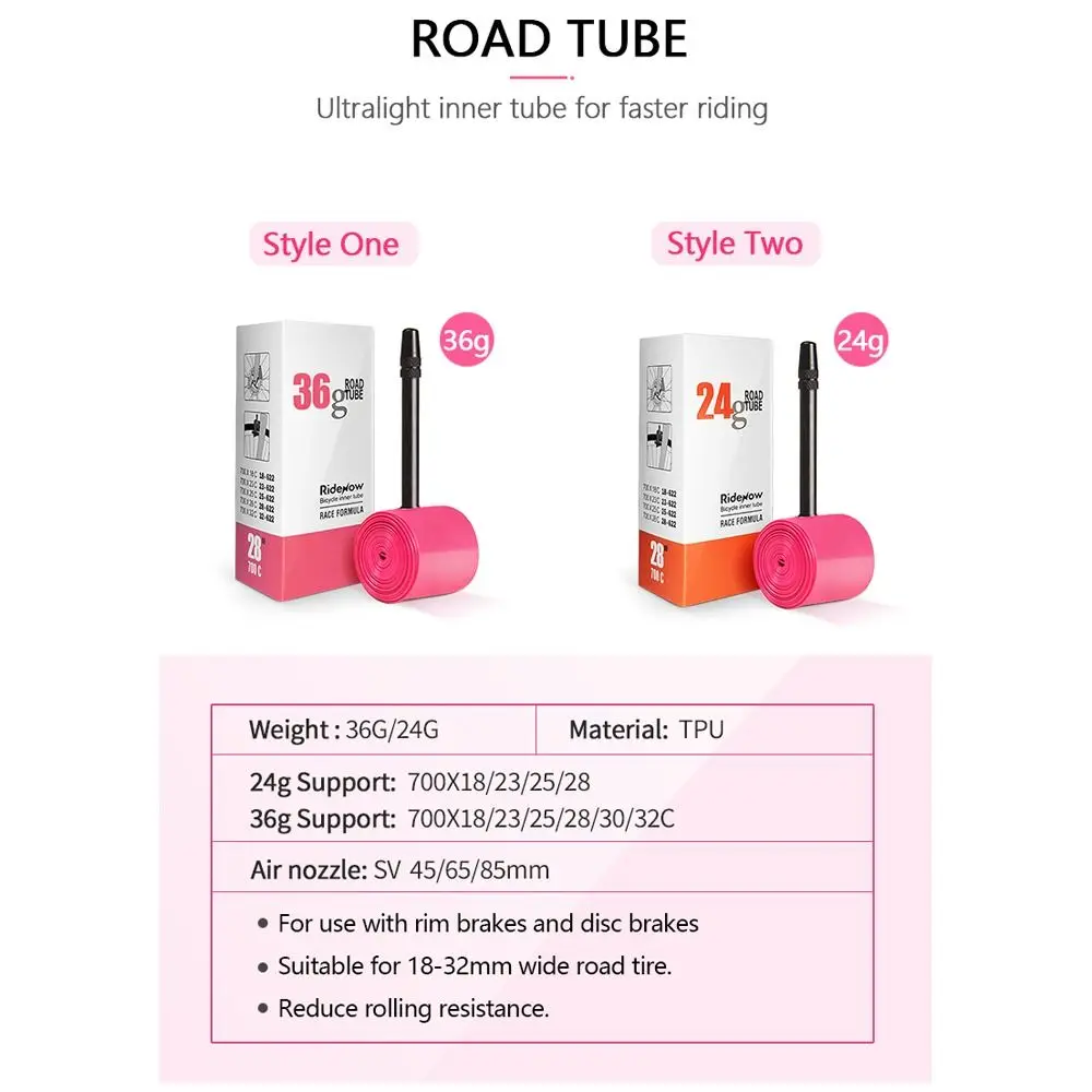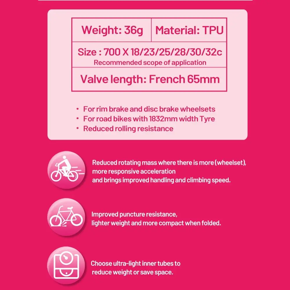 Nombre del artículo: tubo interior de bicicleta Material: poliuretano termoplástico elastómero TPU Tamaño: como se muestra en la imagen Características: ultraligero, resistente al desgaste, boquilla no extraíble El paquete incluye: tubo interior de bicicleta de 1 pieza Nota: el color de la foto puede ser un poco diferente del producto real debido a la visualización a color de diferentes monitores. Medido a mano, tal vez alrededor de 1 ~ 2cm de diferencia. Gracias por su comprensión.