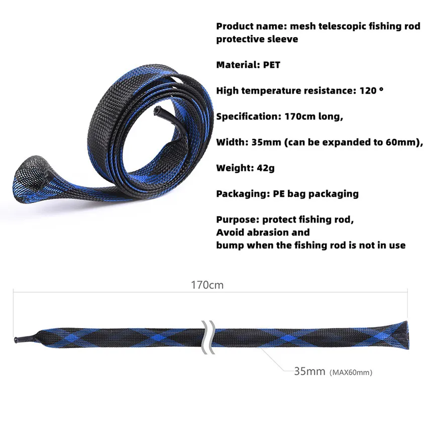 Tubo de malla telescópico para caña de pescar, funda protectora para evitar golpes y arañazos, 35mm x 170cm, accesorios para equipo de pesca
