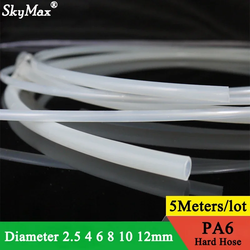 Tubo de nailon de alta presión PA6, compresor de aire neumático, tubo de aceite de poliamida rígida lisa, color negro claro, diámetro de 2,5, 4, 6, 8, 10, 12mm, 5M