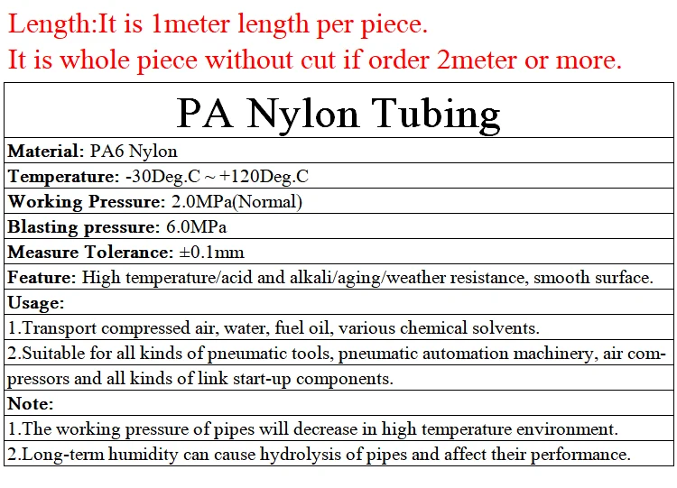 Tubo de nailon PA6 de alta presión, color negro claro, 10M, diámetro 2,5 4, 6, 8, 10, 12mm, compresor de aire neumático, tubo de aceite de poliamida rígido suave