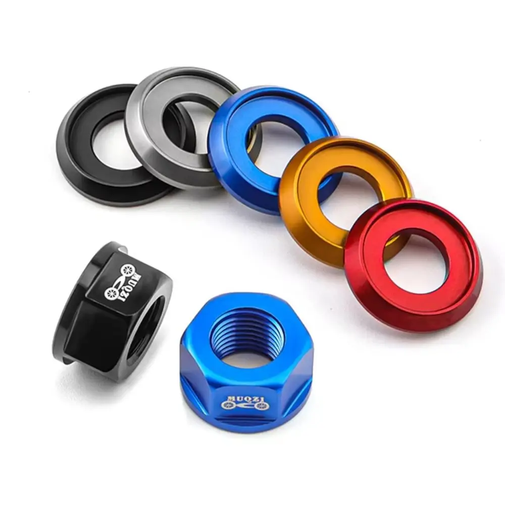 Nombre del producto: tuerca de cubo de bicicleta Material: Color aleación de aluminio: negro/oro/plata/rojo/azul Peso: 5,4g/por tamaño: 15*9mm (0,59*0,35 pulgadas) lista de productos: 2 tuercas de buje de bicicleta. Nota: 1. Debido a la medición manual, Hay un error de tamaño de 1-3cm (0,39-1,18 pulgadas) 2. Recuerde que debido a los efectos de iluminación y al brillo del monitor, el tono de color de la foto y el artículo real podrían ser ligeramente diferentes.