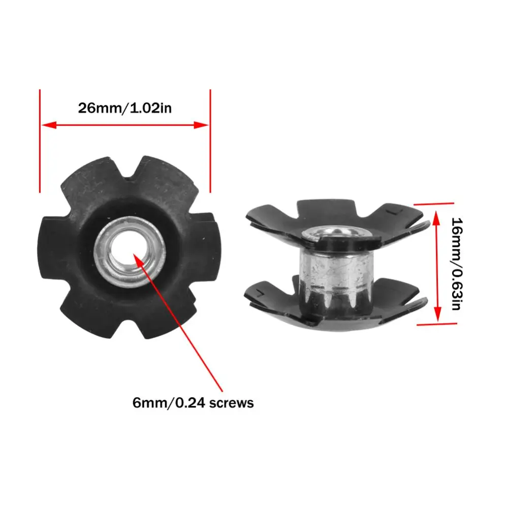 Construcción de acero resistente: estas tuercas en forma de estrella están hechas de acero aleado, lo que proporciona un soporte estable dentro del tubo de dirección.La estructura firme ayuda a sujetar el perno de la tapa superior de forma segura en su lugar, lo que los hace adecuados para el mantenimiento regular de la bicicleta y las necesidades diarias de conducción.