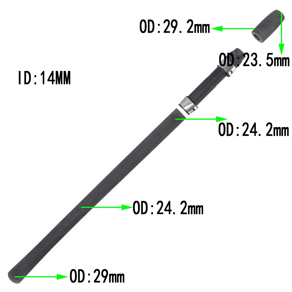 La longitud del tubo de agarre EVA es de 41 cm,El diámetro interior es de 12 mm y 14 mm, es compatible con 16# &18#20# asiento de carrete