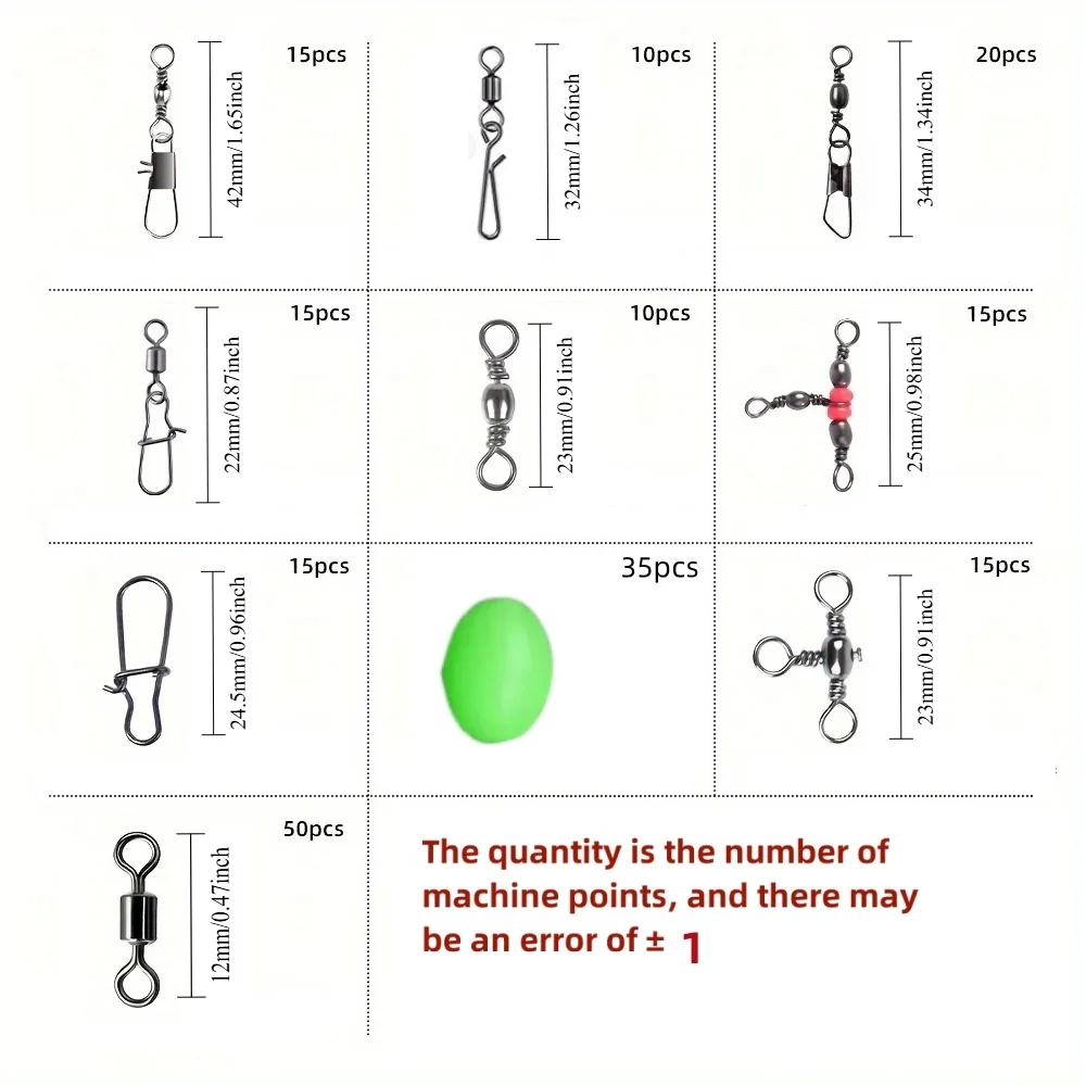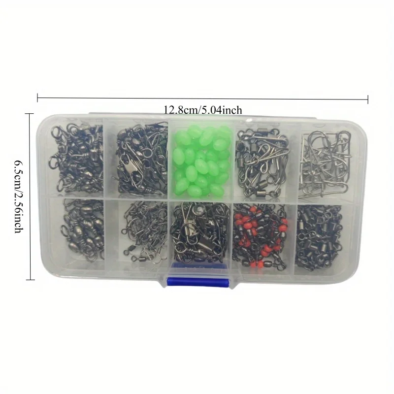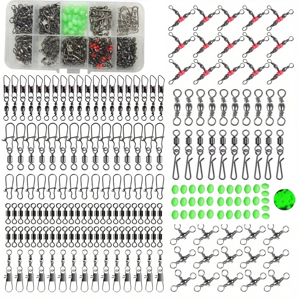 Una caja contiene 200 kits de adaptadores de aparejos de pesca, incluidos adaptadores y conectores de barril, cuentas de pesca.