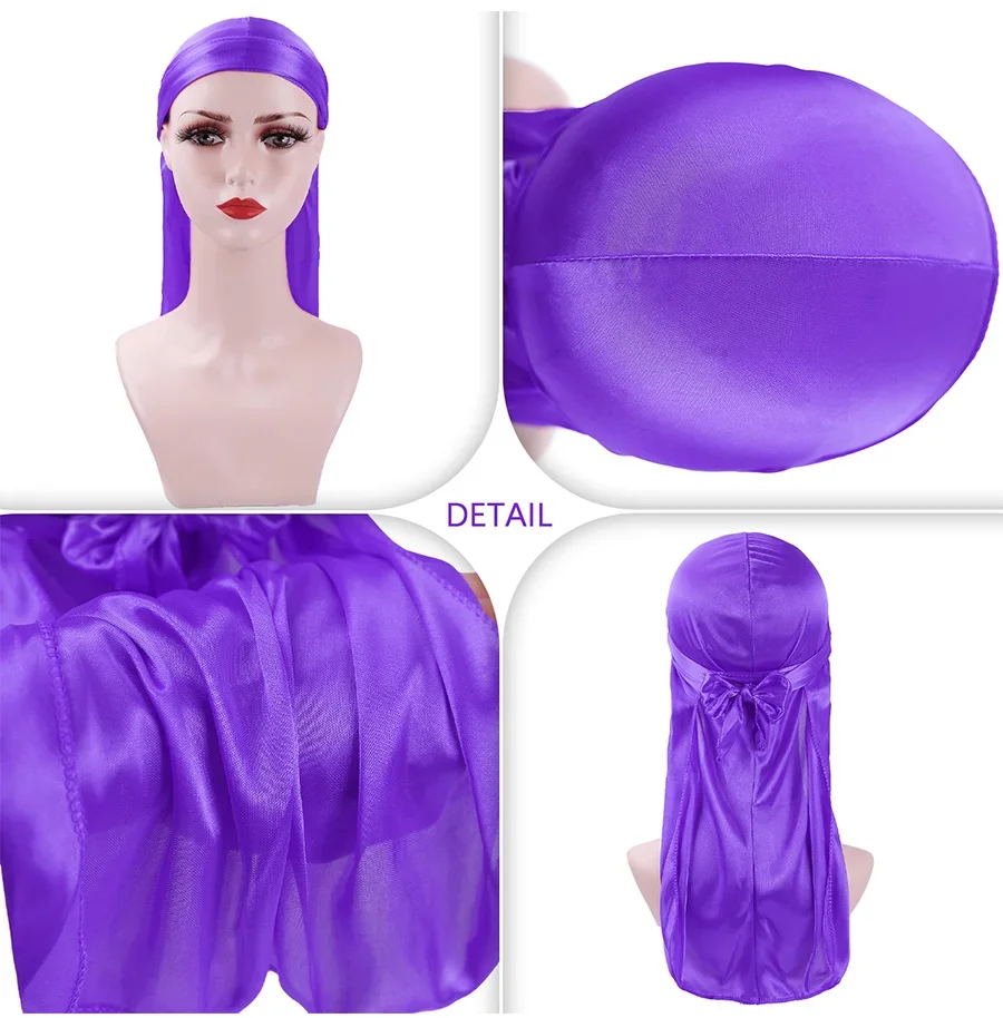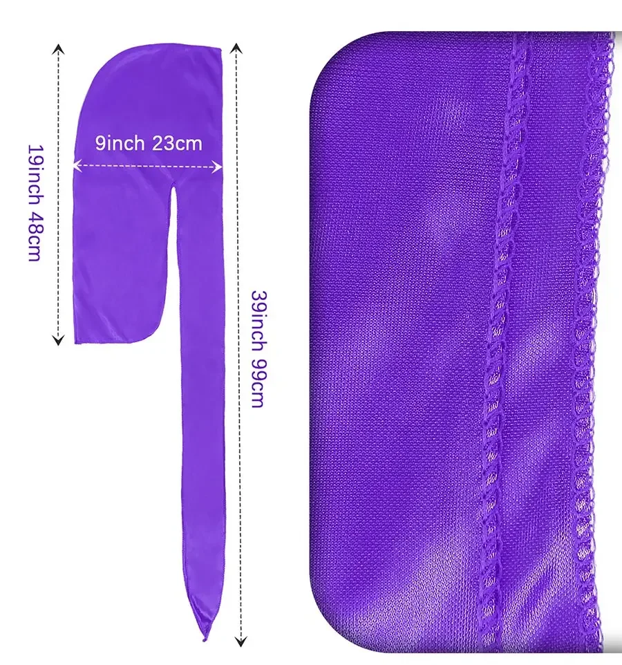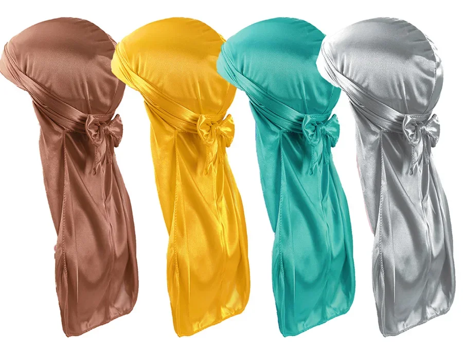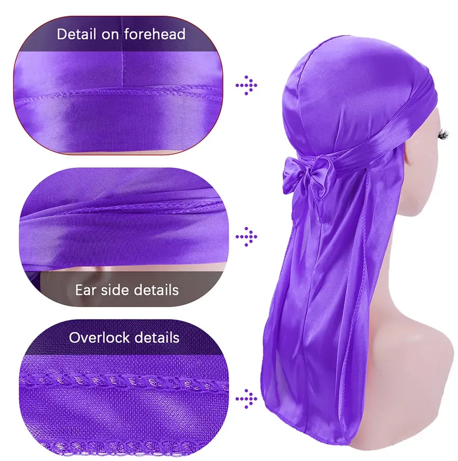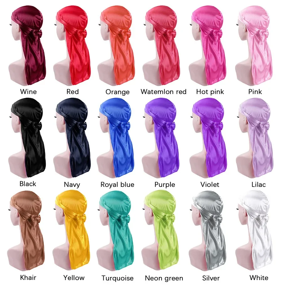 mujerHombres sedosos Durags Bandanas Turbante sombrero Pelucas Doo Hombres Satén Durag Biker Headwear Diadema Accesorios para el cabello Cola Extra larga Du-Rag