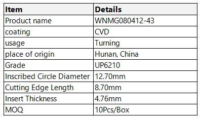 Detalles del producto: Inserto de carburo WNMG080412-43