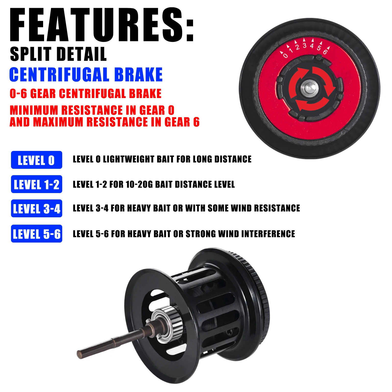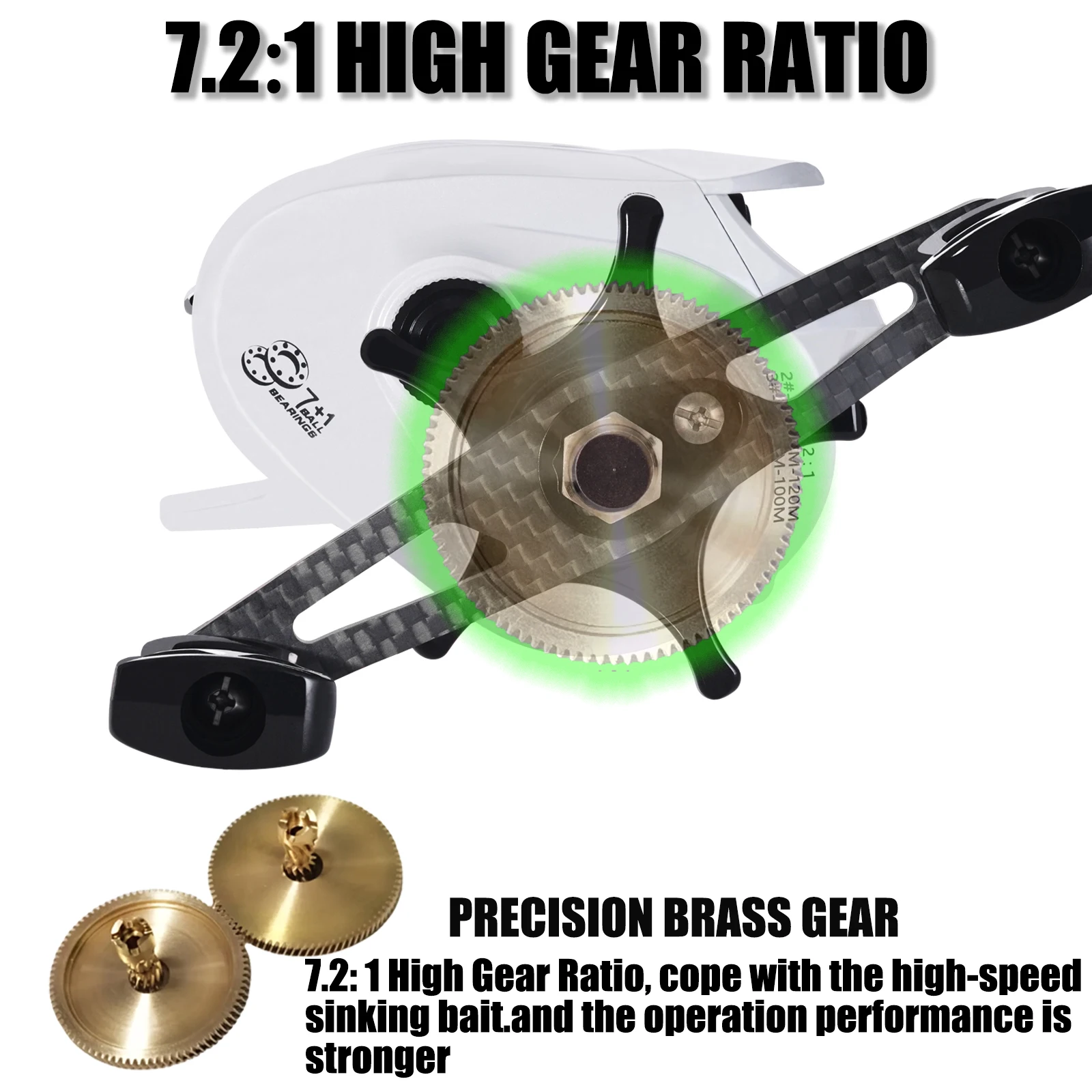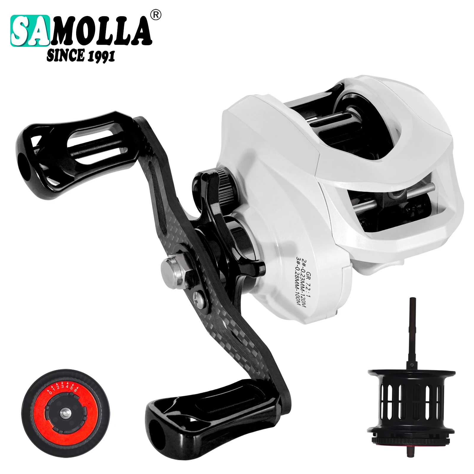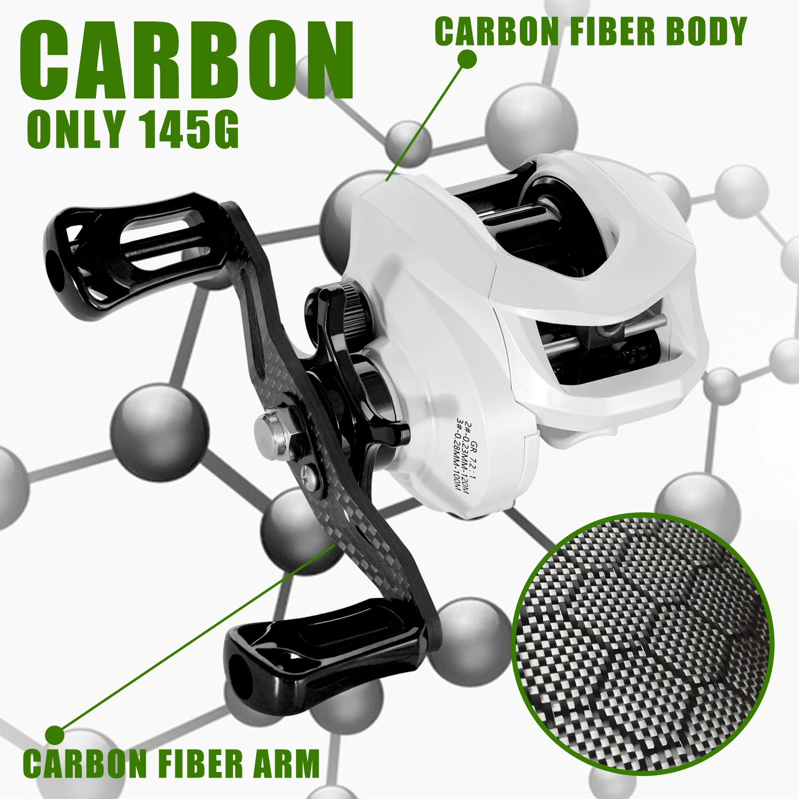 Urltra-light-carrete de pesca de fibra de carbono, carrete de pesca de Baitcasting, súper ligero, carrete poco profundo, frenos magnéticos y centrífugos, 145G