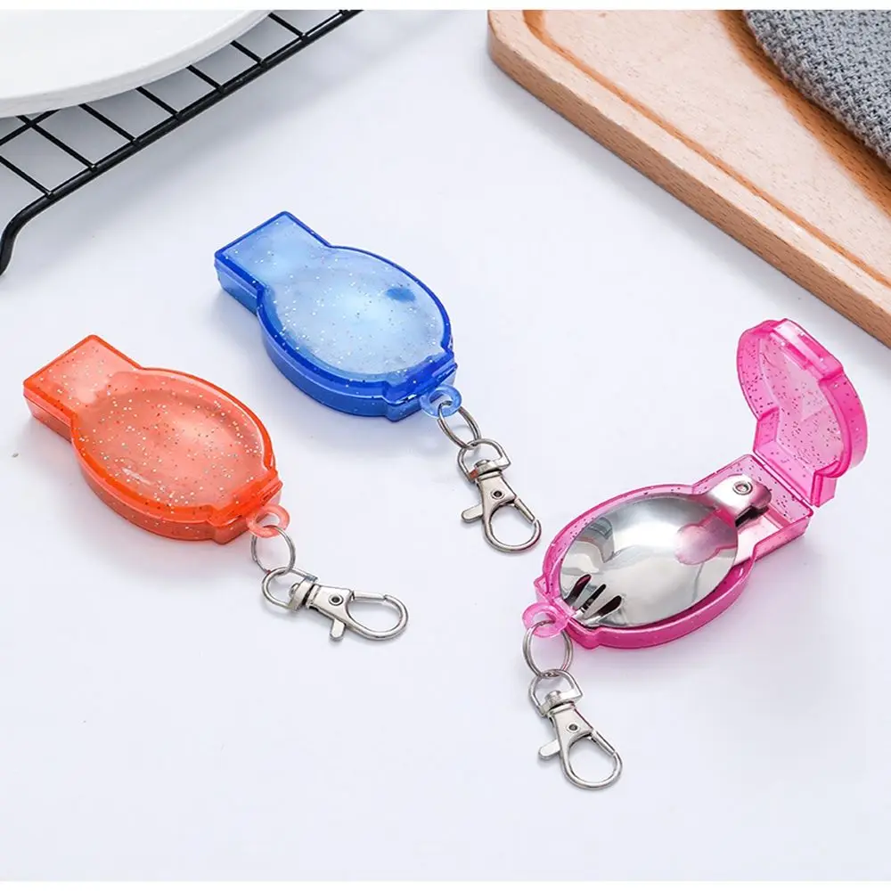 The spoon and fork adopts folding design with box cover, portable and easy to take with when go outside.