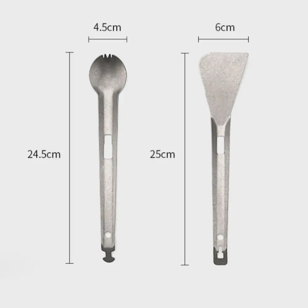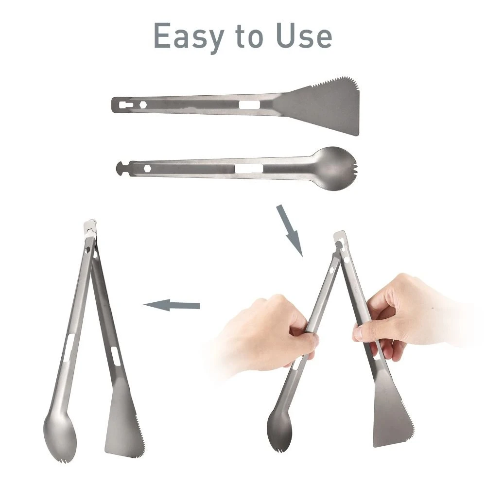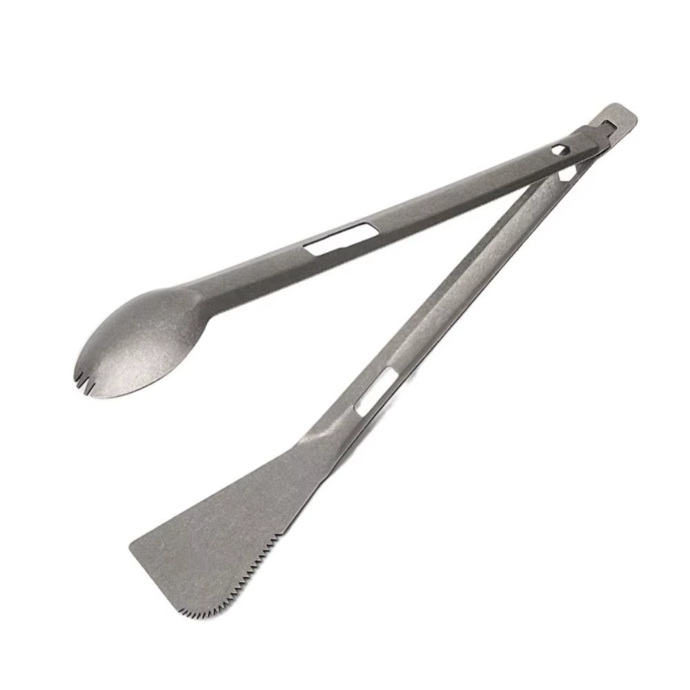 Multi-functional design: can be separated into a spork and serrated spatula, or combined together to use as a BBQ tong.