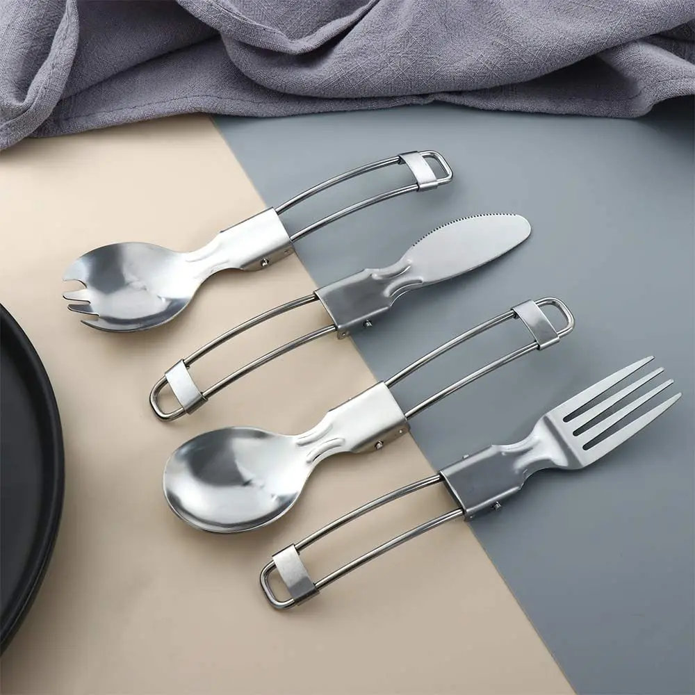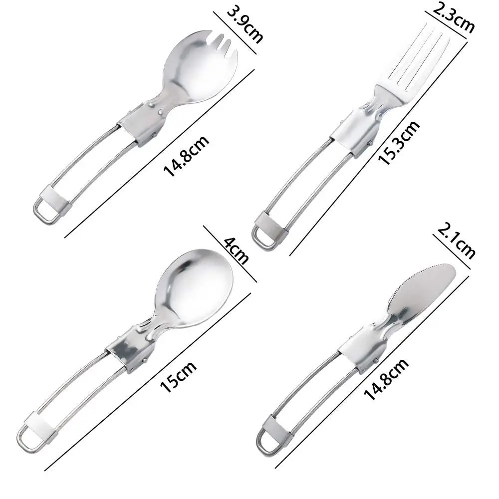 Color: plata. El paquete incluye: 1/4 x vajilla. Cantidad: 1/4 ". Material: acero inoxidable. Tamaño: como en la imagen. Es plegable, fácil de llevar y almacenar. Incluso puedes ponerlo en el bolsillo de tu abrigo. Adecuado para camping, viajes, picnic, senderismo y otras actividades al aire libre.