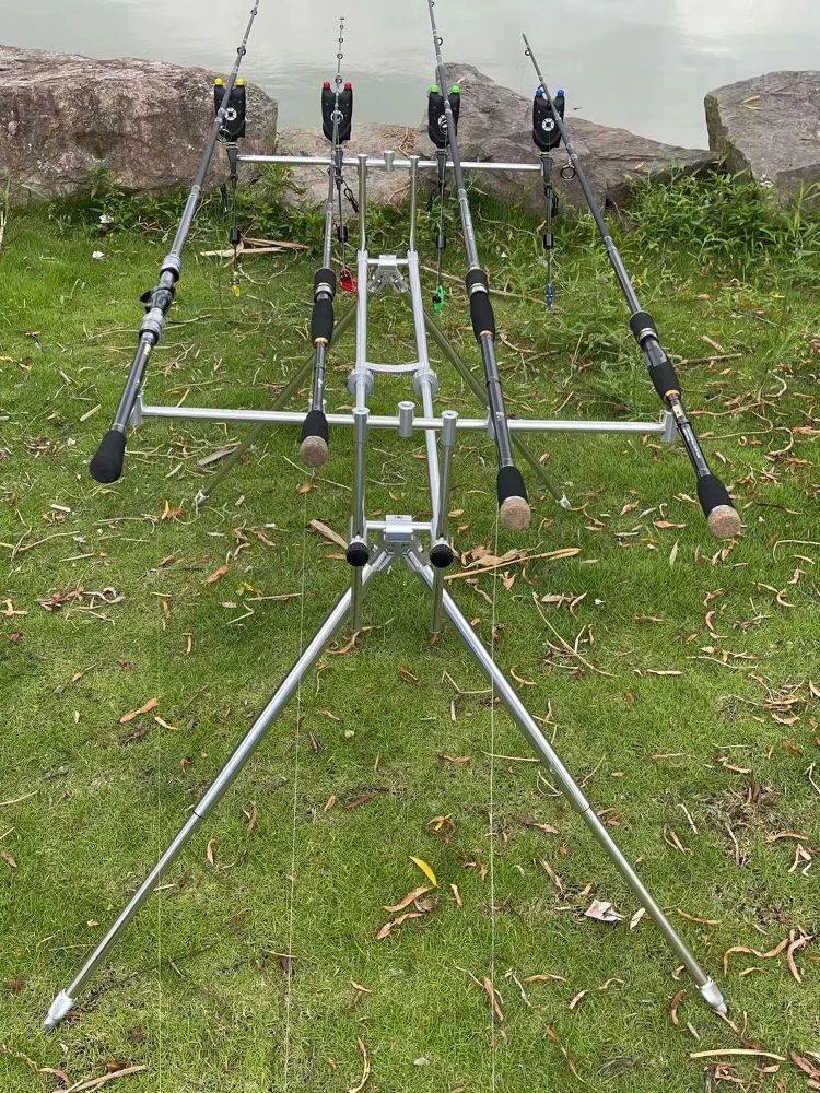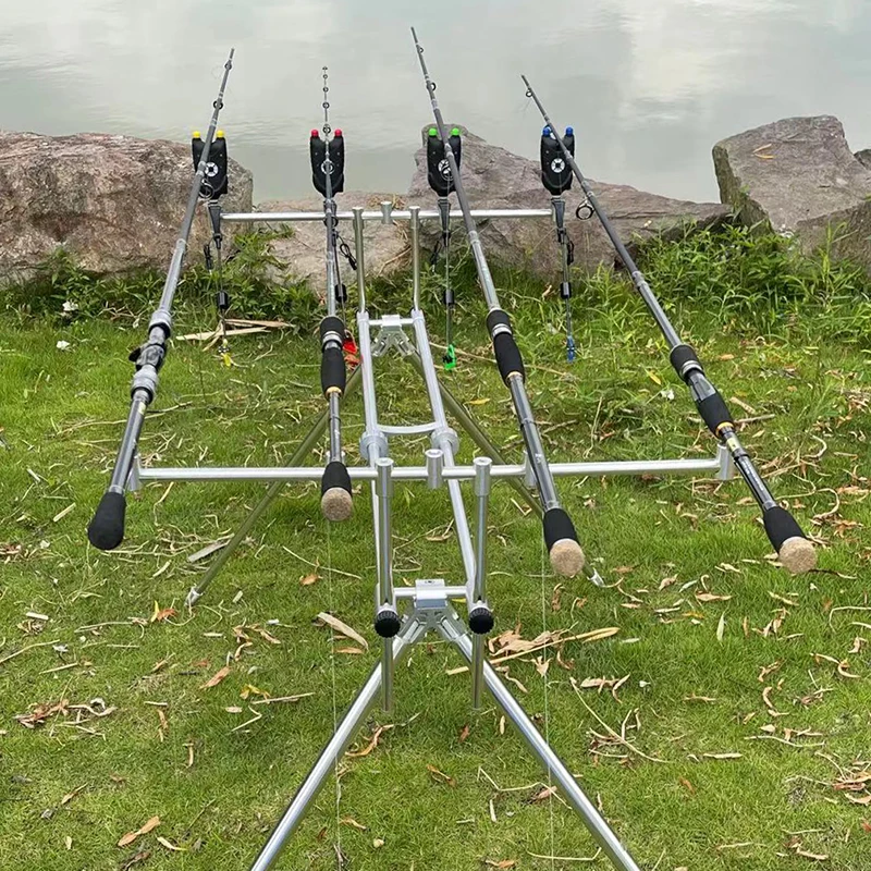 Soporte de caña de pescar de aluminio ajustable, soporte de caña de pescar ecológico para pesca de carpa, alarma de mordedura, soporte de poste retráctil