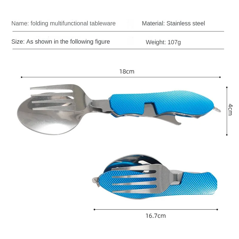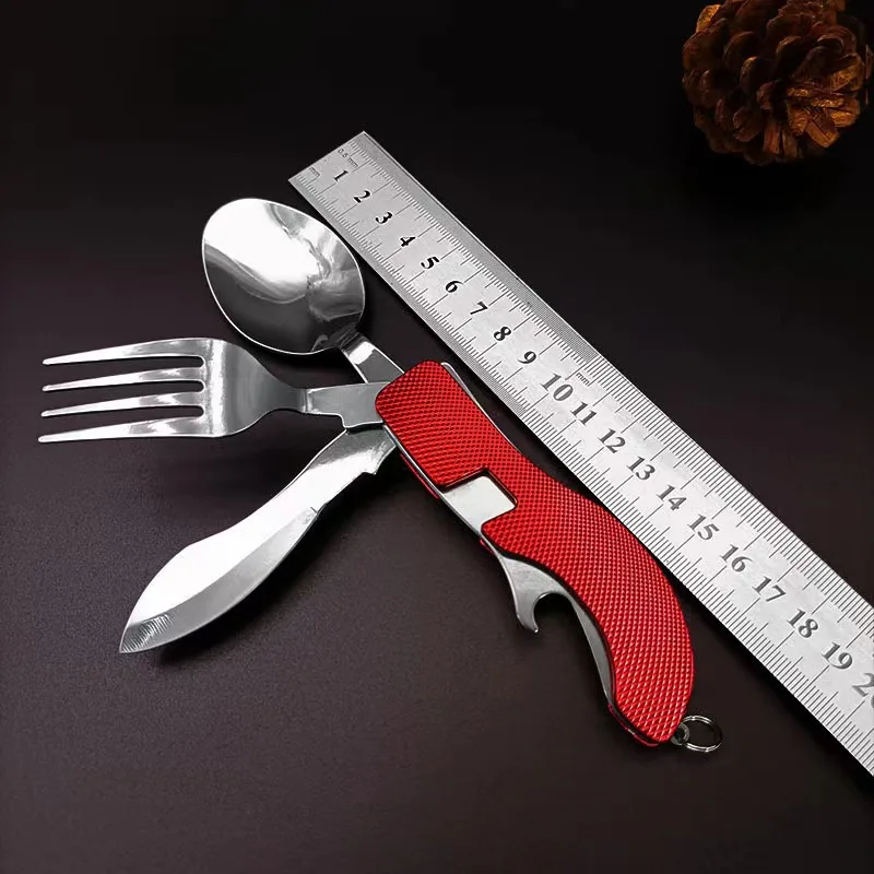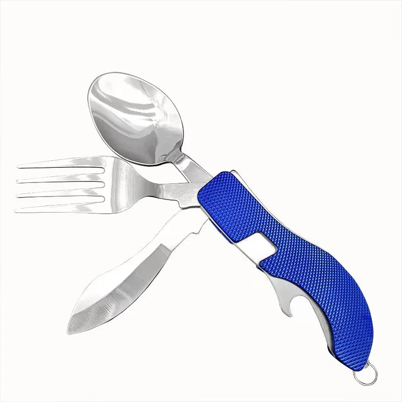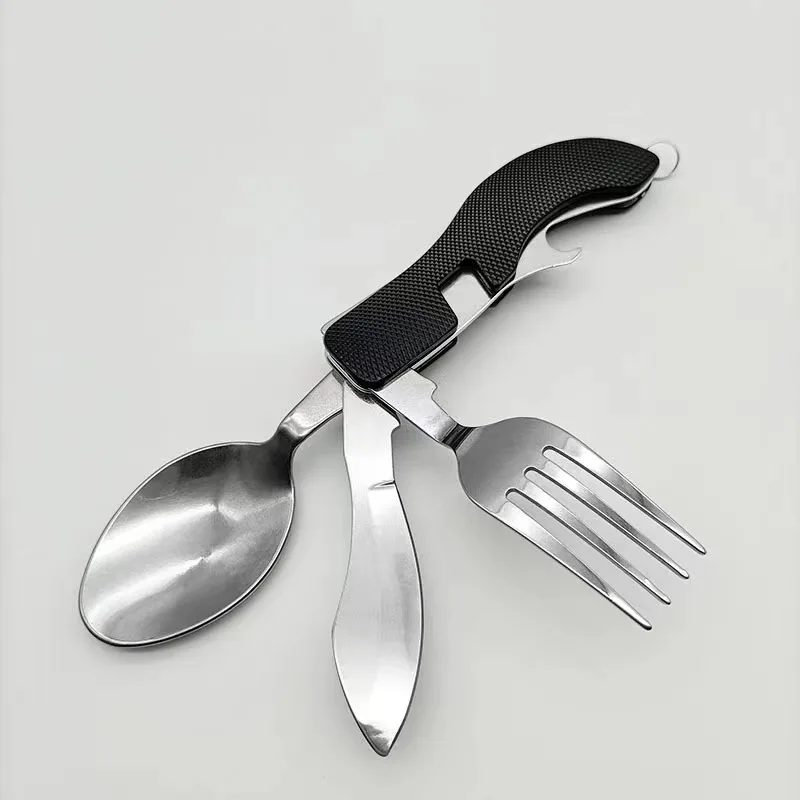 Vajilla multifuncional plegable portátil para exteriores, cuchara de acero inoxidable, tenedor, camping, cocina, el más vendido