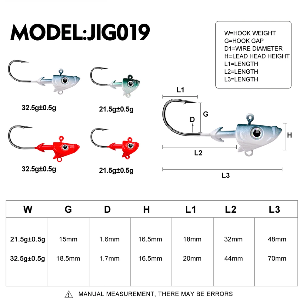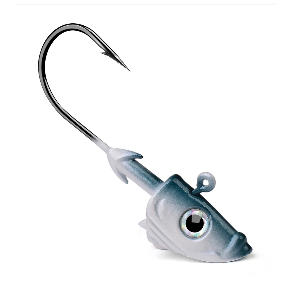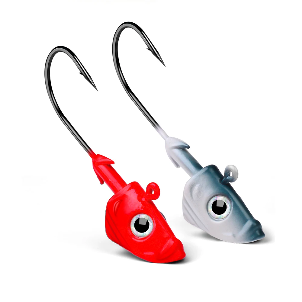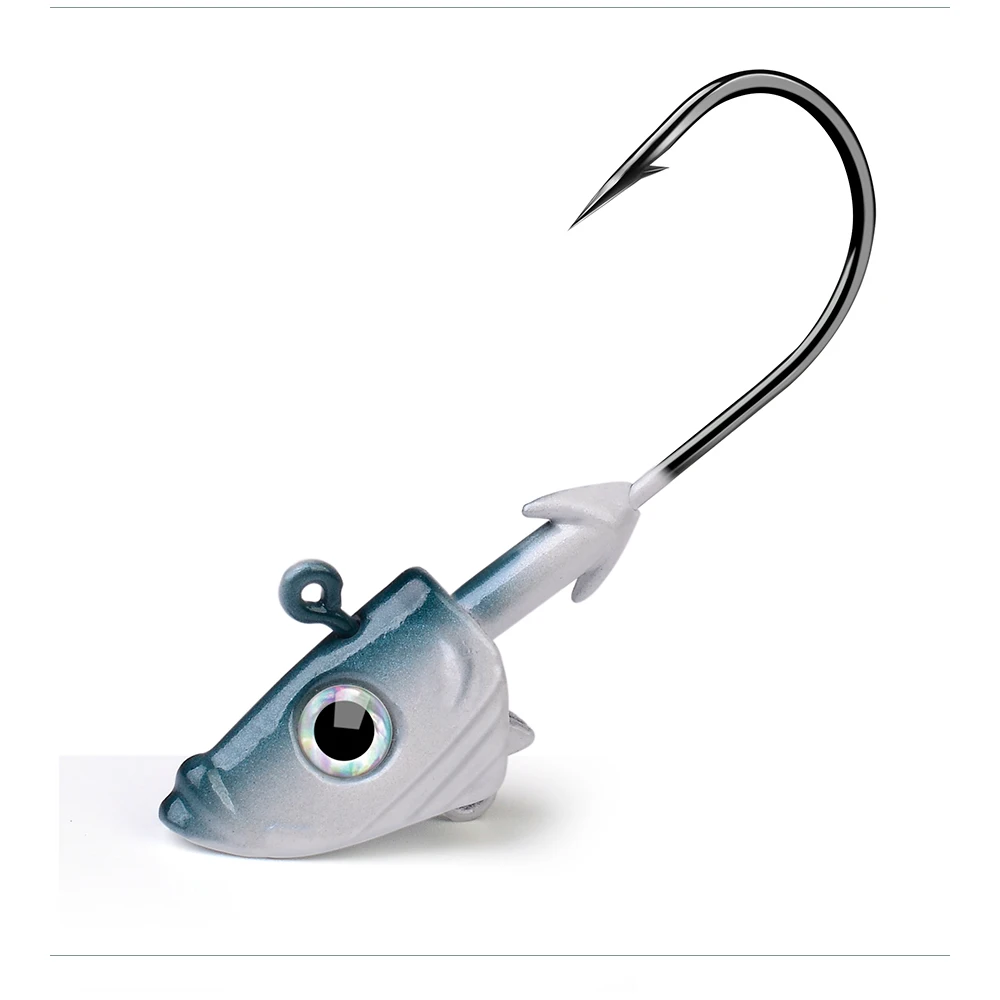 VALHALLA 50 Uds. Forma de pez anzuelo con cabeza plomada 21,5g 32,5g ganchos de ayuda de gusano blando Metal expuesto ganchos de pesca con púas anzuelos aparejos