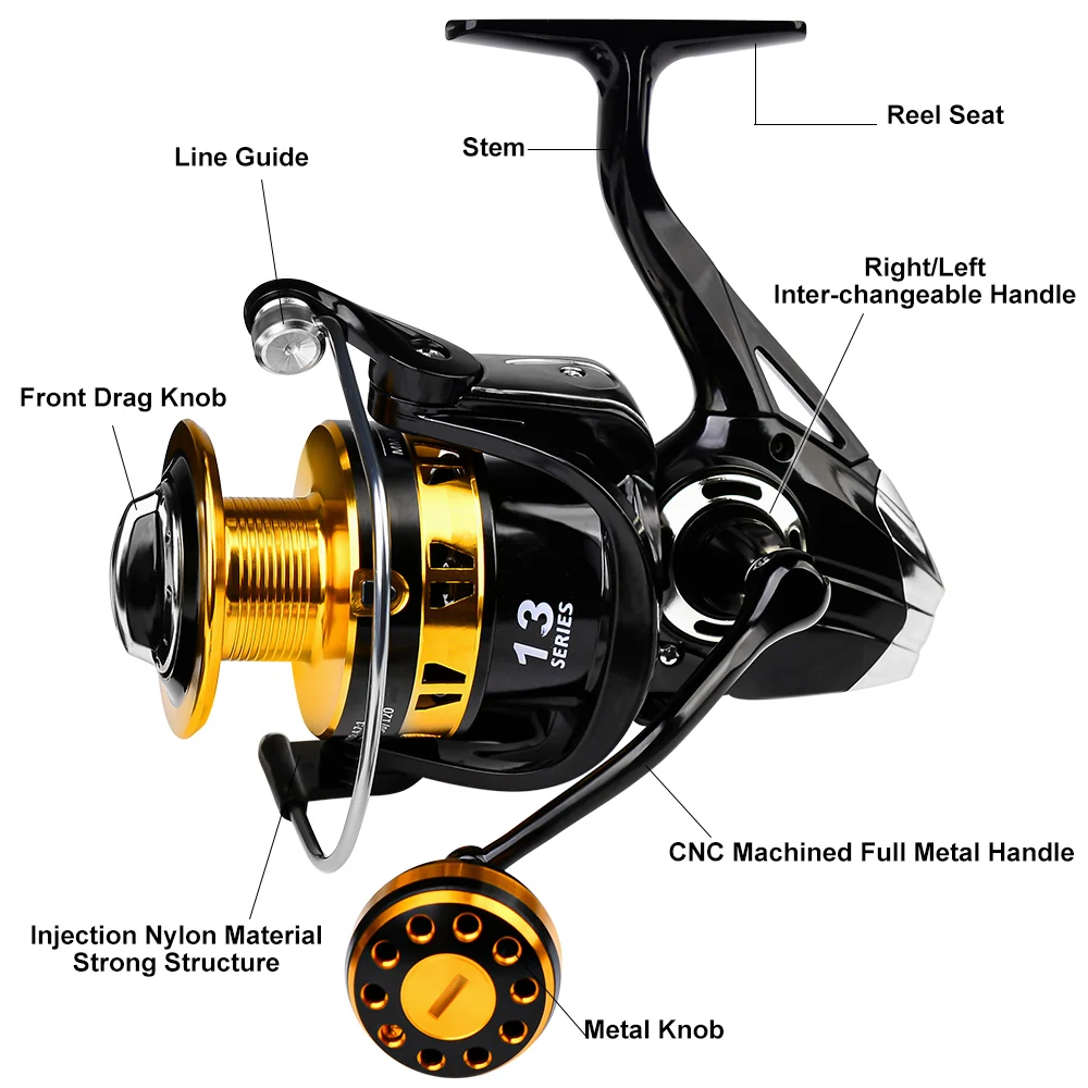 Carrete giratorio de la serie VALHALLA valalla 1000-7000 carrete de pesca mecánico CNC 4,7: 1/5.0:1/5,2: 1 rueda de pesca de alta velocidad mango de Metal completo