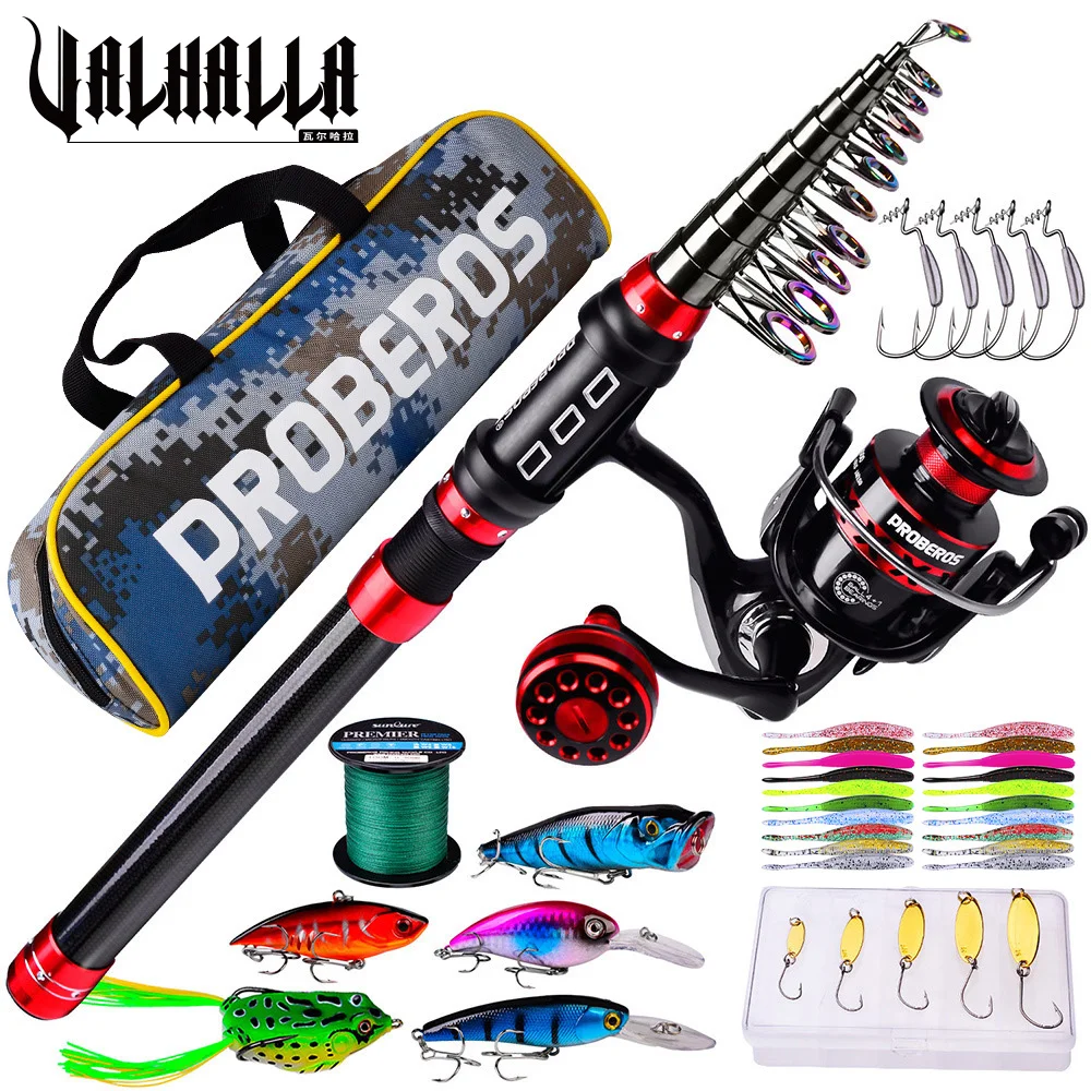 VALHALLA 1,8 m-3,6 m Kit de combos de caña de pescar y carrete Carrete giratorio Carrete de pesca y caña giratoria Línea de pesca Bolsa de cebo Ganchos Juego completo Peaca
