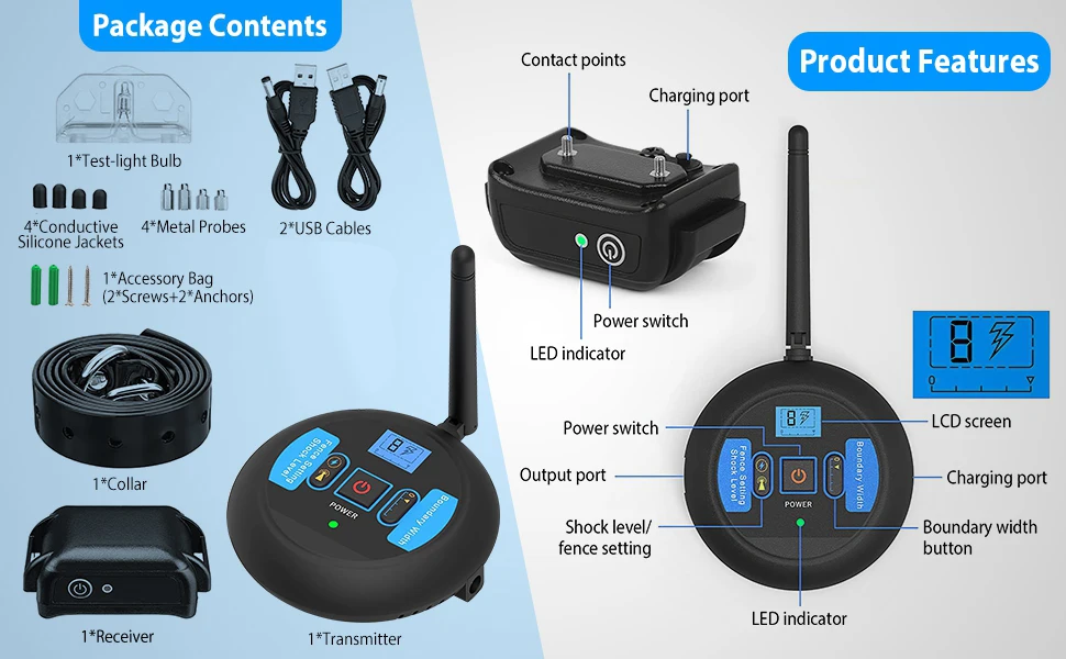 Vino con un Ariel roto. Funciona de alguna manera, pero a veces se apaga al azar, incluso cuando el perro no está cerca del área del límite. Solicité un reembolso y solo ofrecieron la mitad del monto. No lo compres.