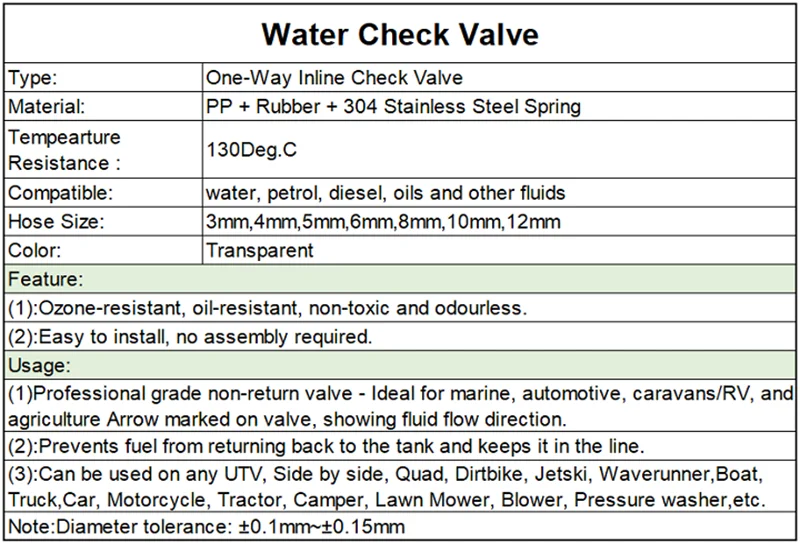 Válvula de retención de líquidos en línea, Pagoda antirretorno de plástico unidireccional para combustible, Gas, líquido, resistente al ozono, 1 unidad, 3,4,6,8mm