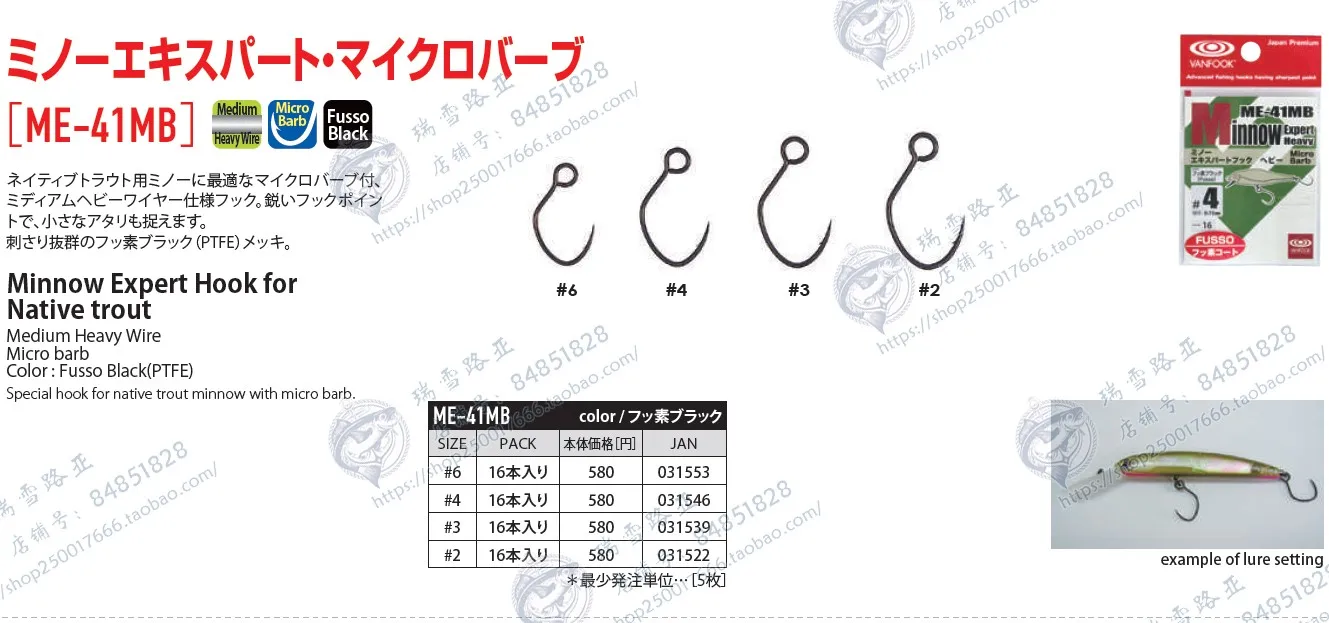 VANFOOK ME-41MB importado de Japón, Micro púa, gancho único, gancho modificado minoano, trucha, boca cortada, boca de caballo