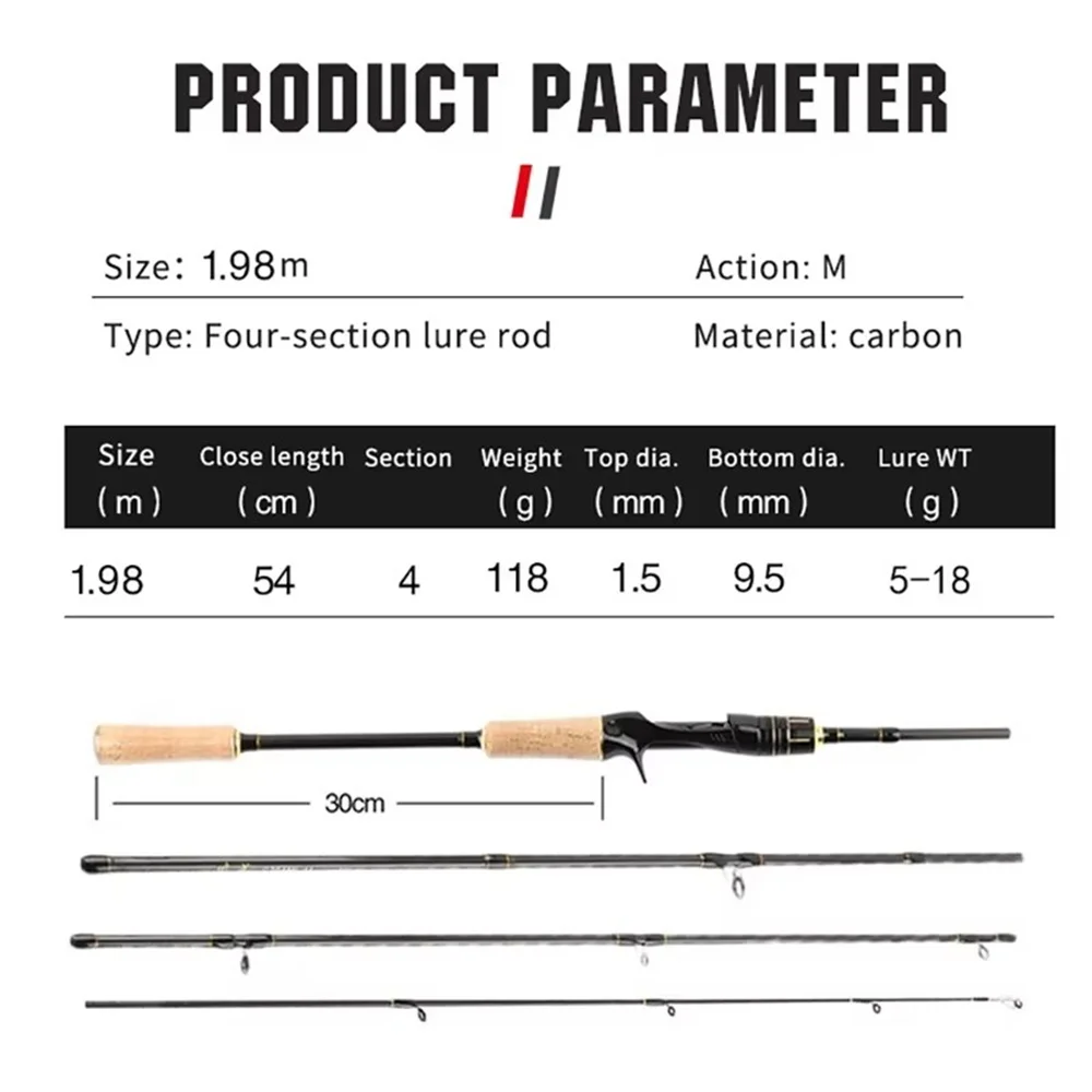 Varilla enchufable portátil Luya de cuatro secciones, varilla de lanzamiento remota de carbono de 1,98 metros con rueda de gota de agua ajustable