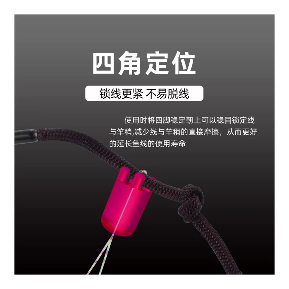Cuando esté en uso, mantenga las cuatro esquinas hacia arriba para bloquear con seguridad la línea y el poste, reduciendo la fricción entre la línea y el poste.