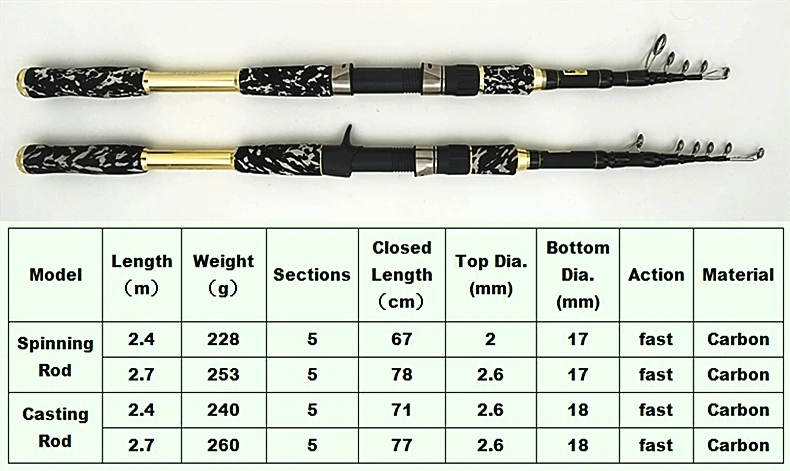 Varilla telescópica de carbono fuerte