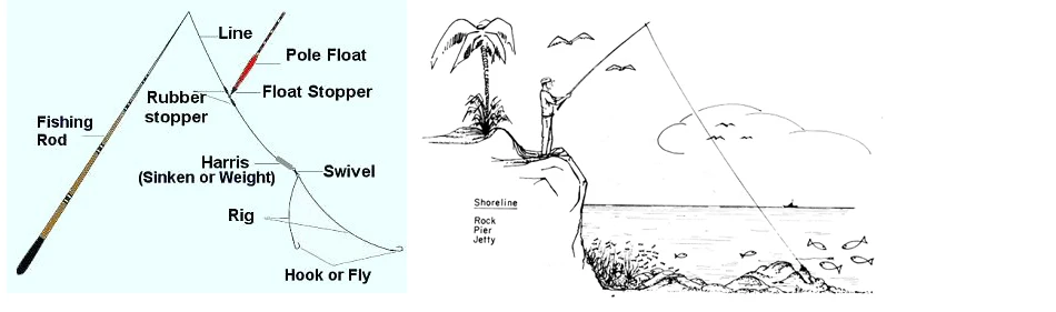 Un simple conjunto de aparejos para la pesca del poste
