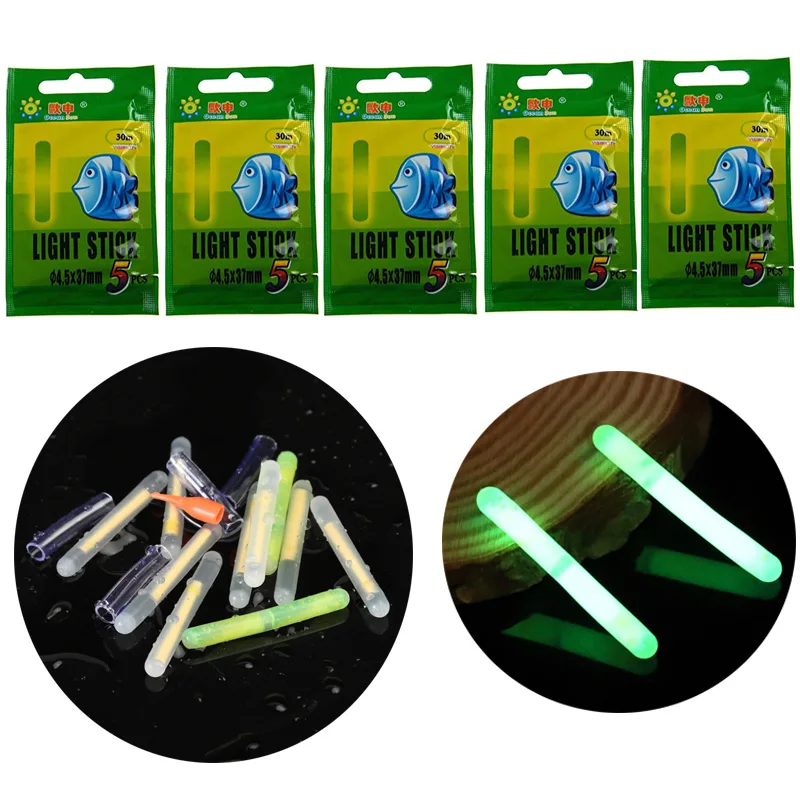 Varillas luminosas flotantes para pesca nocturna, palos de luz fluorescentes verdes para pesca, alarma de campana, 4,5x37mm, 25/50 Uds.