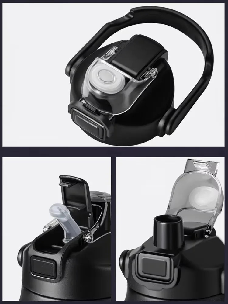 Simplemente presione el botón con una mano, la pajita saldrá automáticamente, nuestra botella de agua aislada con pajita le brinda una manera más fácil de beber agua.La pajita es extraíble, puedes disfrutar bebiendo con pajita o con un flujo rápido de agua sin pajita.Esta tapa mejorada viene con un bloqueo de seguridad y una tapa a prueba de polvo que garantiza que el agua sea 100% a prueba de fugas y saludable.