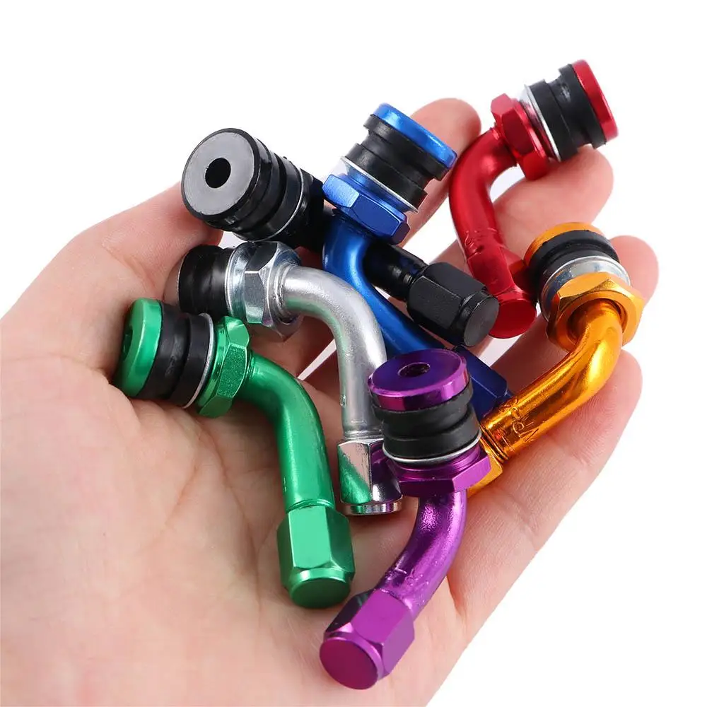 Color: purple/black/blue/silver/golden/red/green Main material: CNC aluminum alloy Size: show as pictures Placement on vehicle: wheels Package list: 2*wheel tire valve stems Description: 100% Brand New and High Quality Made of CNC Aluminum, not easy to fade. Direct replacement, replace with a new valve stems. Solves the problem of access for inflation and checking of air pressure. 90 degree valve stems allow easier filling and easier access for checking tire pressure. Note: 1. Please allow 0.5-1 inch difference due to manual measurement.(1 inch=2.54cm) 2. Due to the light and screen difference, the item's color may be slightly different from the pictures. Please kindly understand. Make sure you don't mind before you order. 3. Please make sure that the part you're replacing is the same as the picture shown before purchasing.