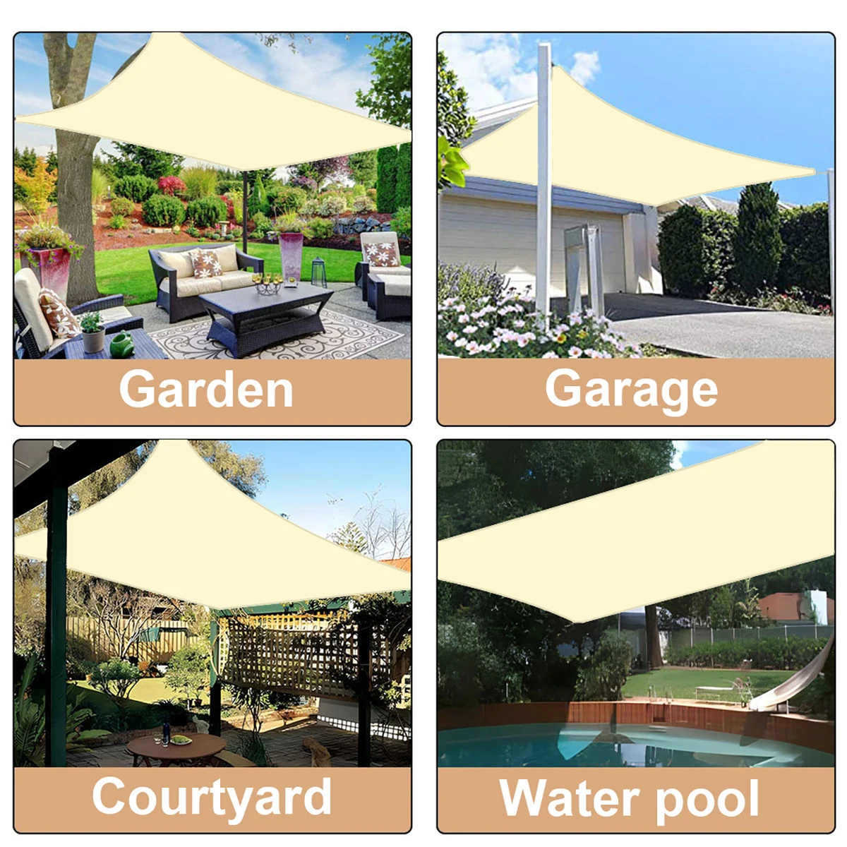 Sin accesorios: 1 parasol vela + 4 cuerdas + accesorios de instalación metálicos