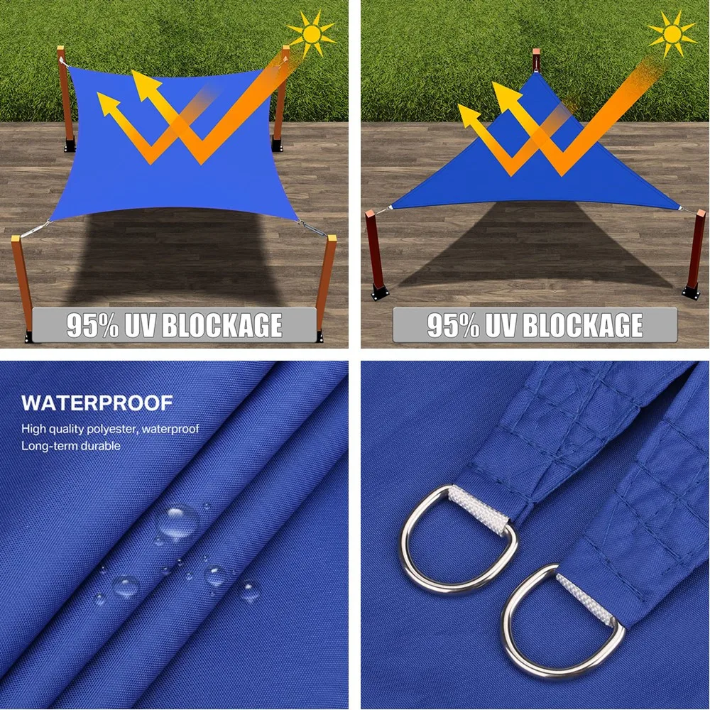 PROTECCIÓN UV:Hasta un 98% de protección UV y una tasa de sombreado del 90%.Las velas de sombra reducirán la temperatura del aire ambiente, reduciendo sus propiedades en el costo de enfriamiento y el consumo de energía.Los ahorros pagarán por el Shade Sail con el tiempo, con el diseño adecuado.