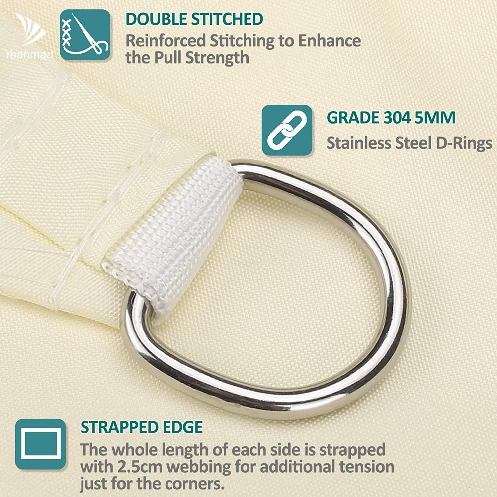 Doble capaEsta vela de sombra está acabada con costuras reforzadas de doble capa resistentes, que evitan que los bordes se deshilachen y se deformen.