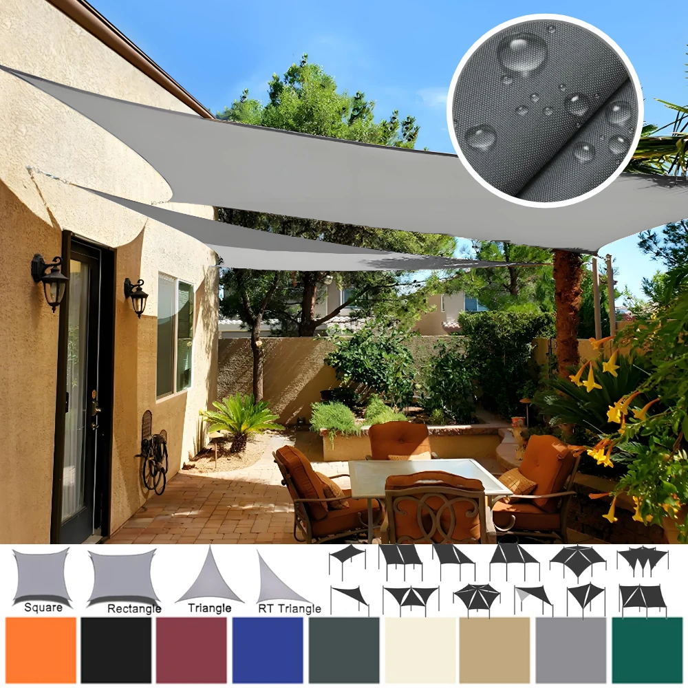 Resistente al agua: la tela ha sido tratada con un revestimiento impermeable, buena para la lluvia y el sol al mismo tiempo, es necesario inclinar la vela de sombra en una posición baja y alta para evitar que el agua contorneada durante la instalación.
