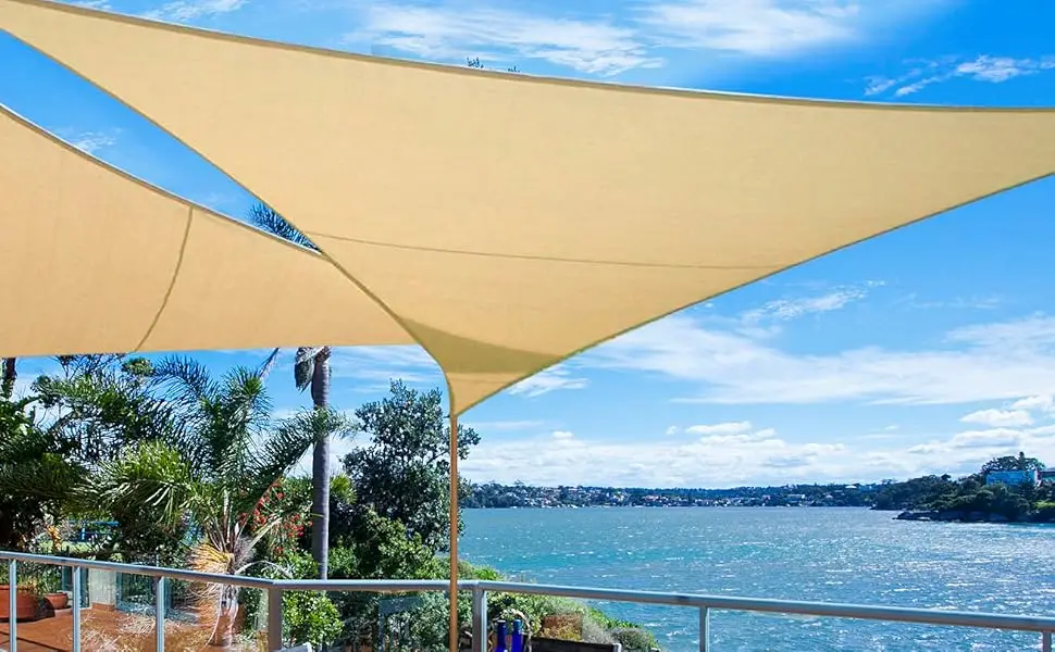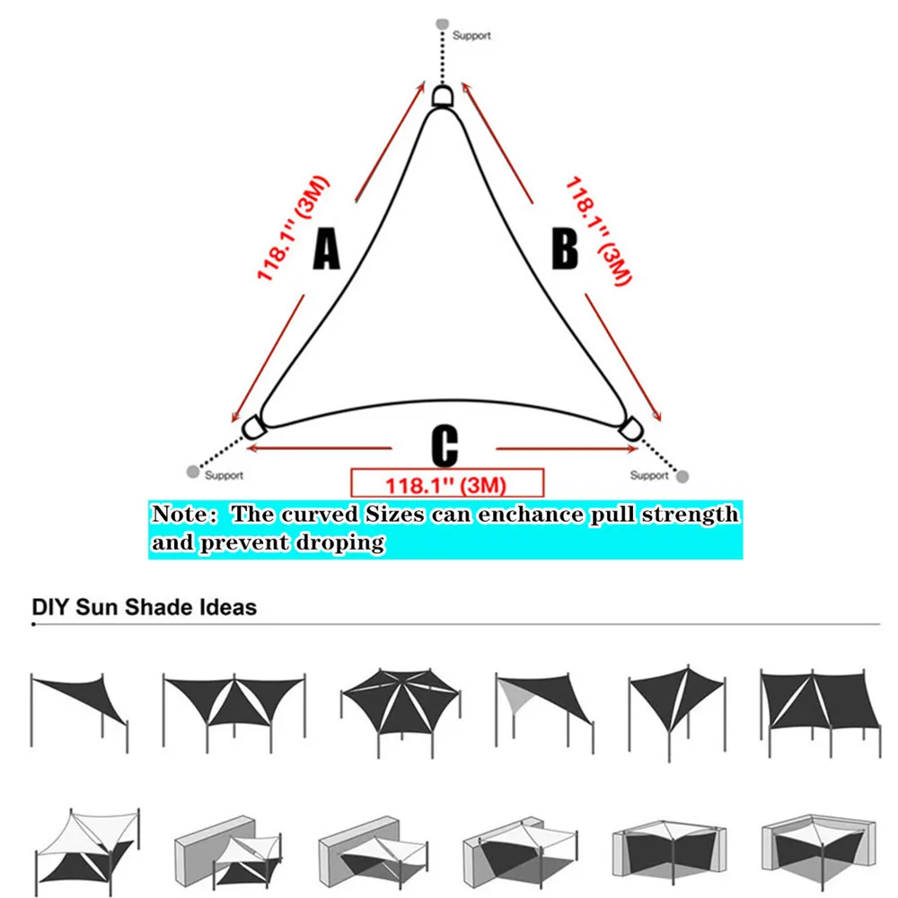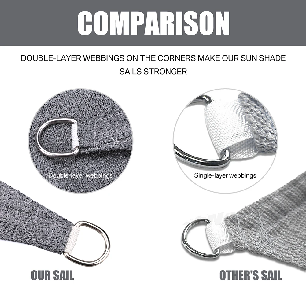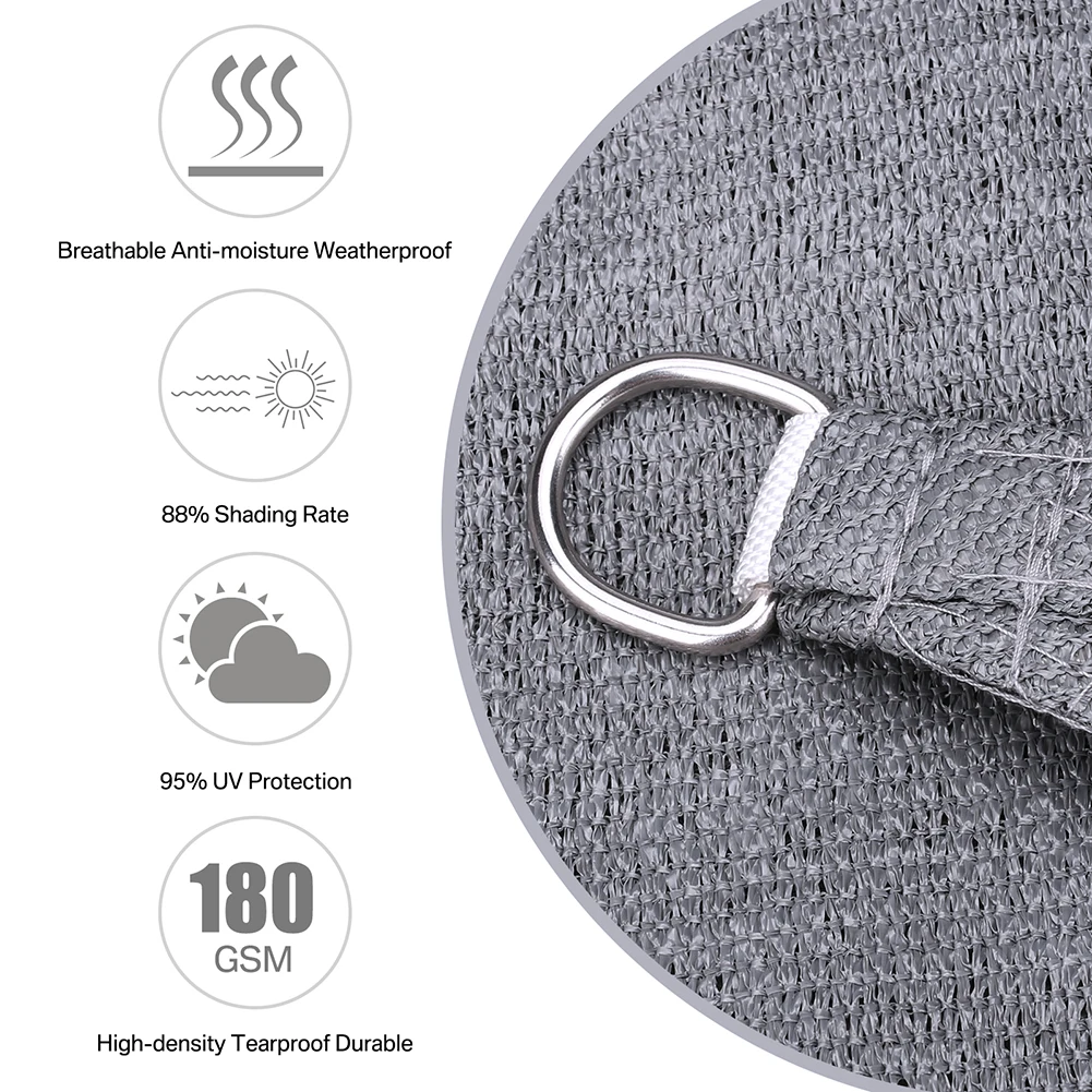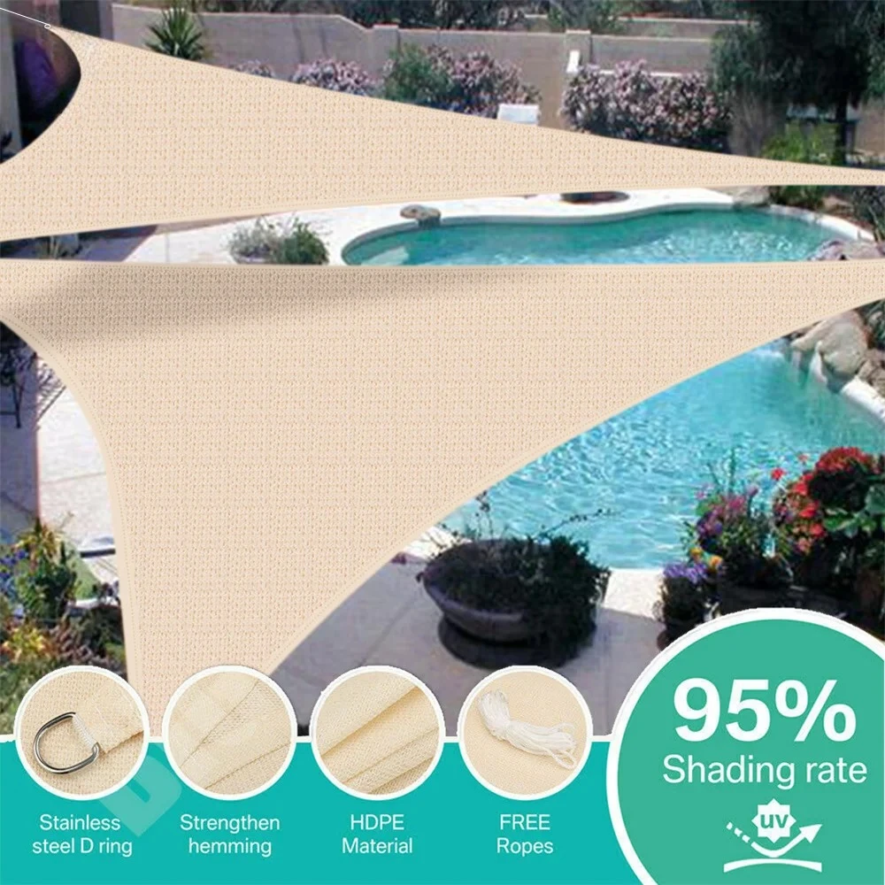 ❤ Material Premium -La vela de sombra está hecha de material de polietileno de alta densidad de 185 g/m2, el bloque tratado contra rayos UV del 95% de los rayos nocivos protege la luz solar directa mientras las brisas frescas y las gotas de lluvia impregnan la malla tejida.Temperatura del área cubierta más baja al menos 10 grados.