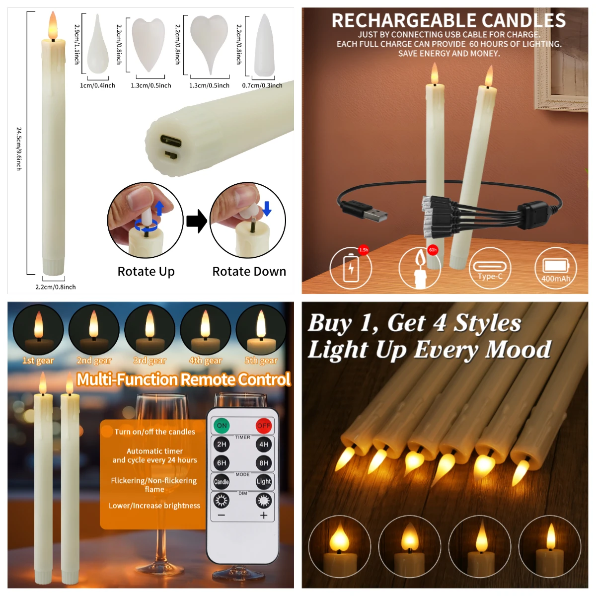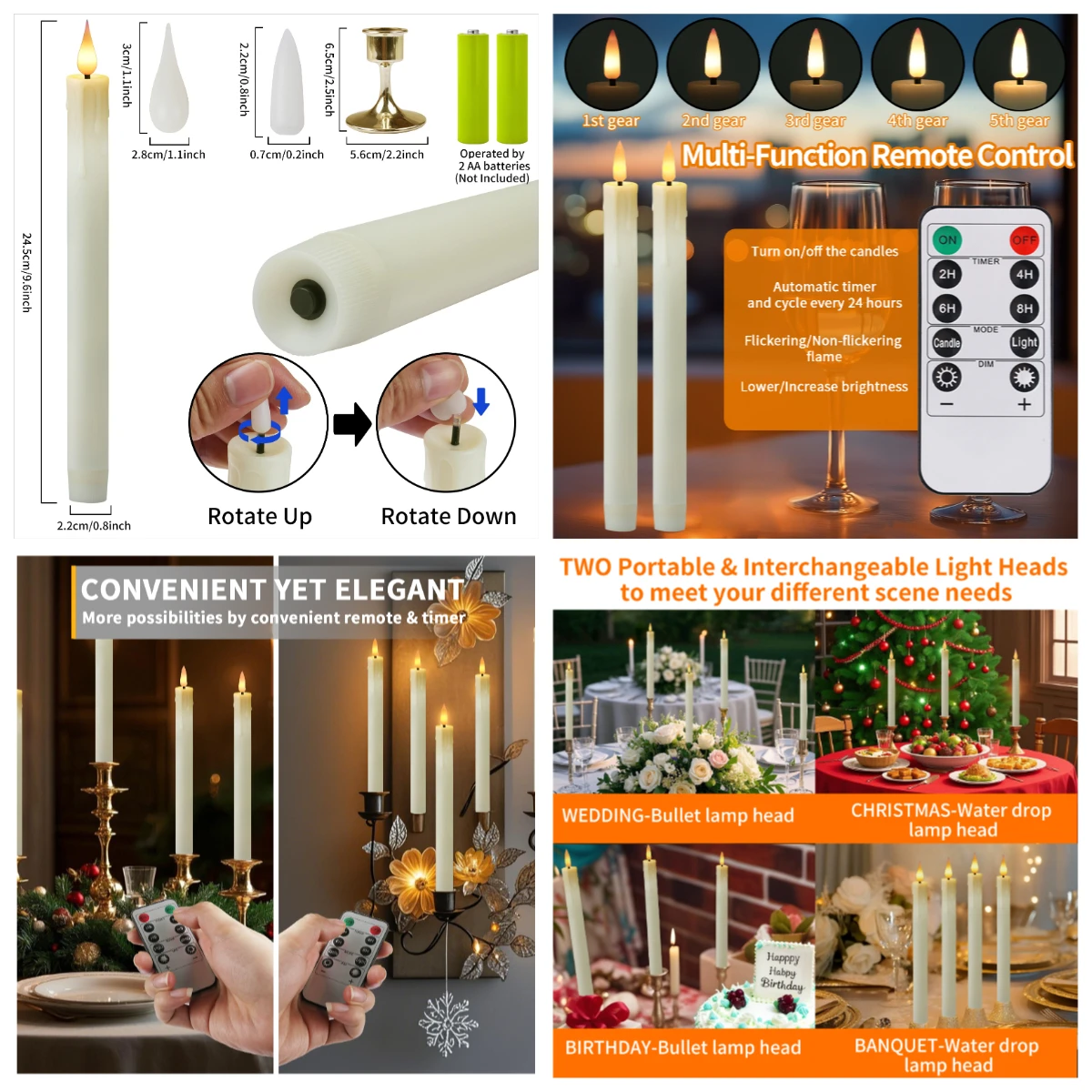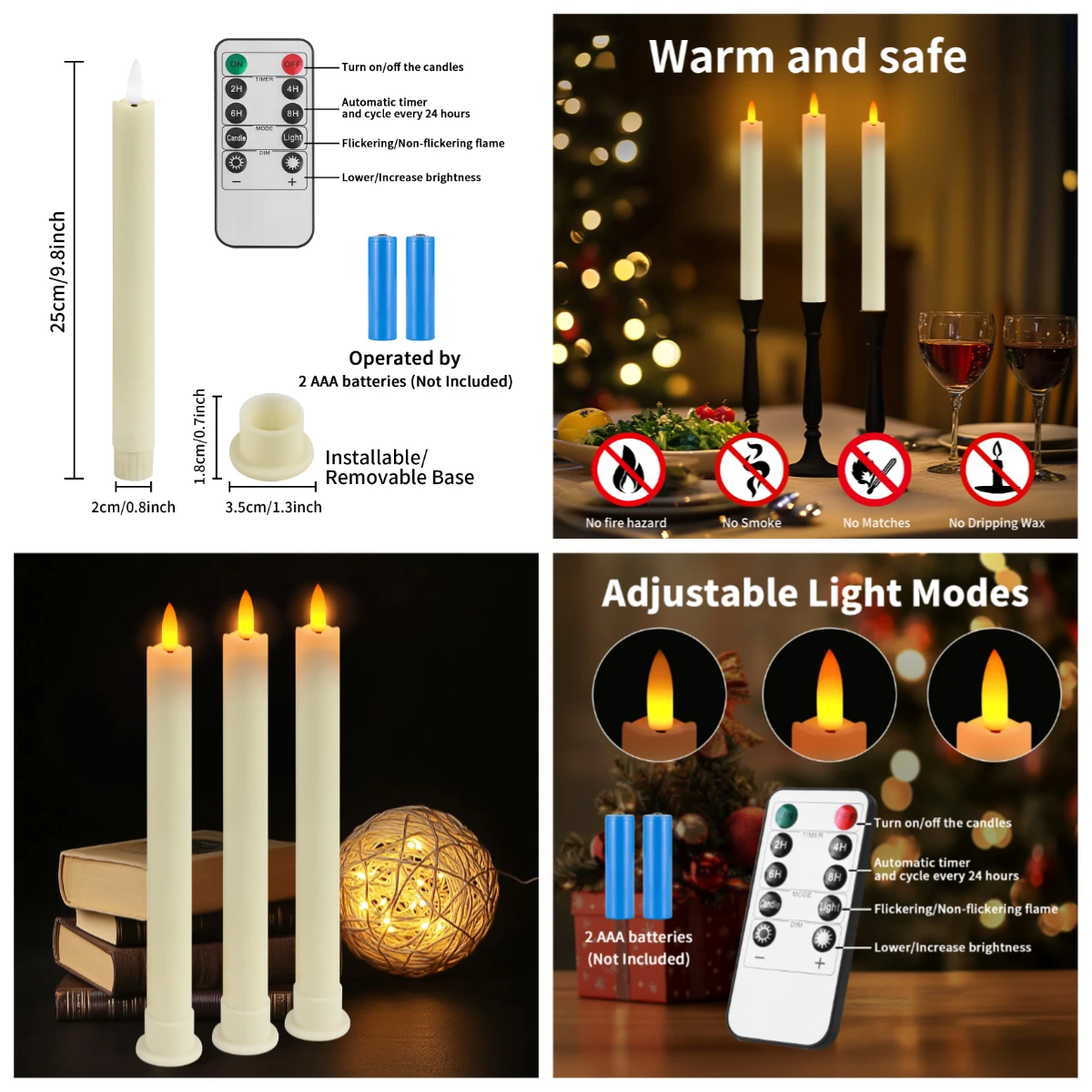 1.Con un increíble juego de velas sin llama que funcionan con baterías, podrá disfrutar de noches ambientales perfectas con tranquilidad.Estas velas cónicas con llama de aspecto real se pueden utilizar como un gran regalo, así como un maravilloso juego para la decoración de su hogar y también para restaurantes, oficinas, iglesias, bodas, cenas, fiestas, decoración de habitaciones infantiles y Navidad.