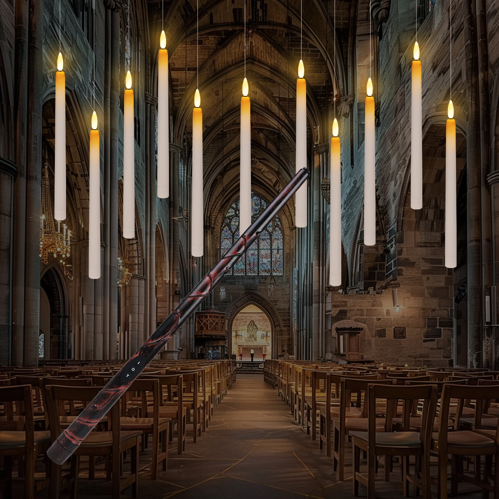Juego completo: nuestro juego incluye velas flotantes LED de 8/16/24/32 piezas, cada una mide 27,8 cm de altura y adornadas con un hilo de pescar de 200 cm.También viene con un control remoto de varita mágica.Cada vela flotante sin llama funciona con una sola batería AAA (no incluida)Control remoto de varita mágica: el control remoto de varita mágica, alimentado por batería AAA (no incluida), ofrece un interruptor y una función de temporizador de bucle de seis horas. Experimente la comodidad de controlar sus velas con solo tocar la varita, agregando un toque encantador a cualquier ocasión.